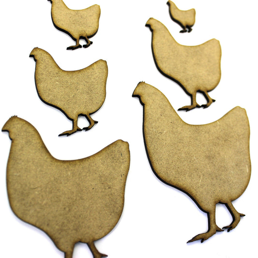 Chicken Hen Craft Shape, 2cm to 20cm. 2mm MDF Wood. Animal, Farm, Farmyard