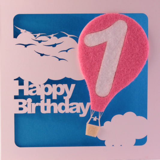 Laser Cut First (1st) Birthday Card with a Coloured Felt Balloon