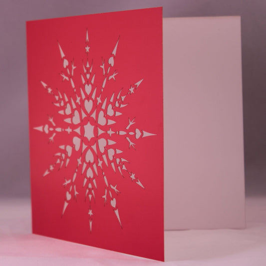 Laser Cut Snowflake Christmas Card. Snowflake With Hearts and Stars