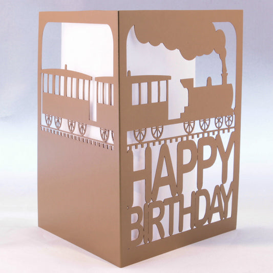 Laser Cut Gold Train Birthday Card - Trains / Vehicles