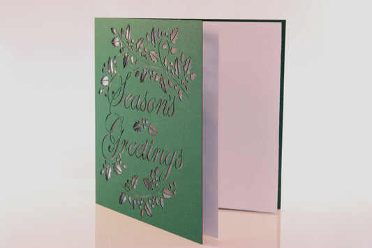Seasons Greetings With Holly Design - Laser Cut Christmas Card