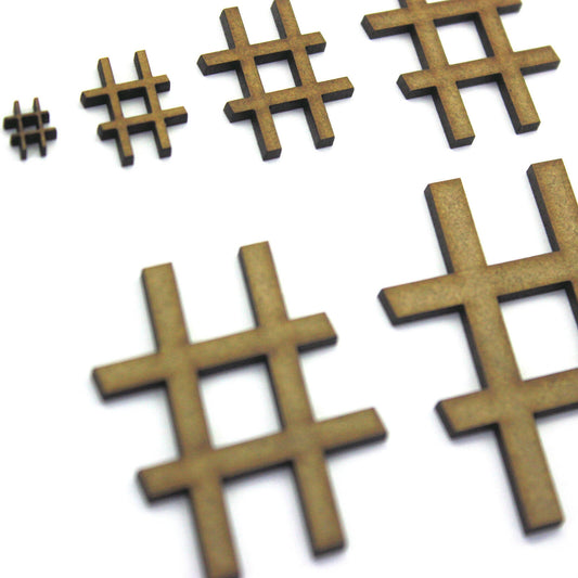 Hashtag Symbol Craft Shapes, Embellishments, Decorations, 2mm MDF. Hash Number #