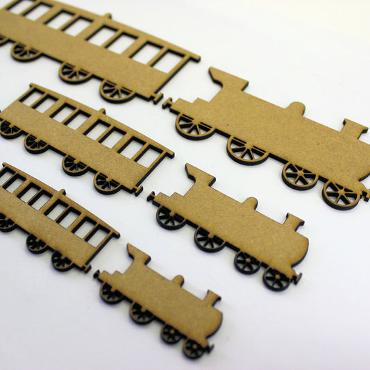 Train and Carriage Craft Shapes, Embellishments Decorations. 2mm MDF Wood