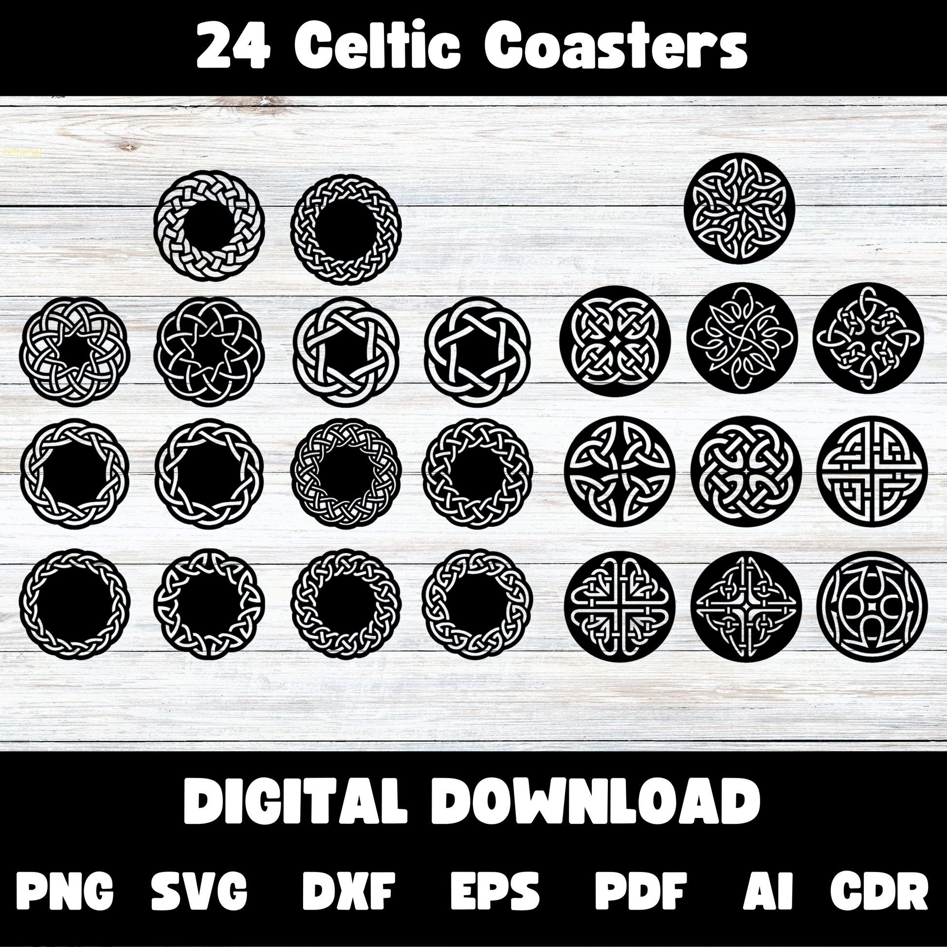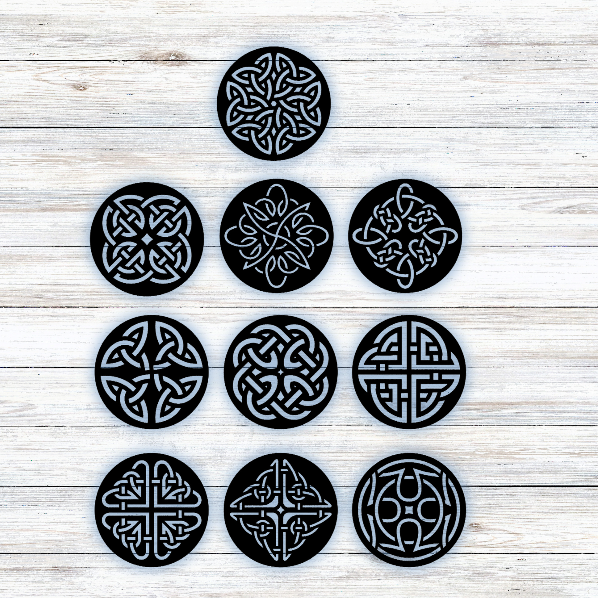 24 Celtic Pattern Coasters Laser Cut Digital File. Vector laser template cut file DXF SVG Ai EPS Cdr Png Glowforge pdf. Scotland, Ireland