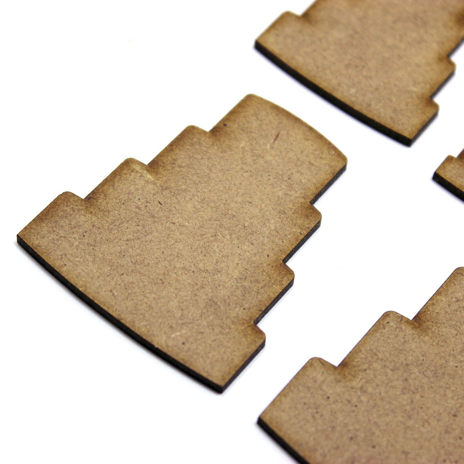 These 2mm thick MDF Wedding Cake shapes are available in the following sizes: 20mm, 30mm, 40mm, 50mm, 60mm, 70mm, 80mm, 90mm, 100mm, 150mm, 200mm They are laser cut from premium 2mm thick MDF These embellishments can be used in craft projects, making decorations, gift tags, cards, decoupage etc. They would be perfect for creating wedding or anniversary cards, gifts and decorations. They can be painted and glued into place (some light roughing of the surface with sandpaper may be required depending on medium being used). Being laser cut, they do have some small laser burn marks, though these can be painted over or sanded out if required.