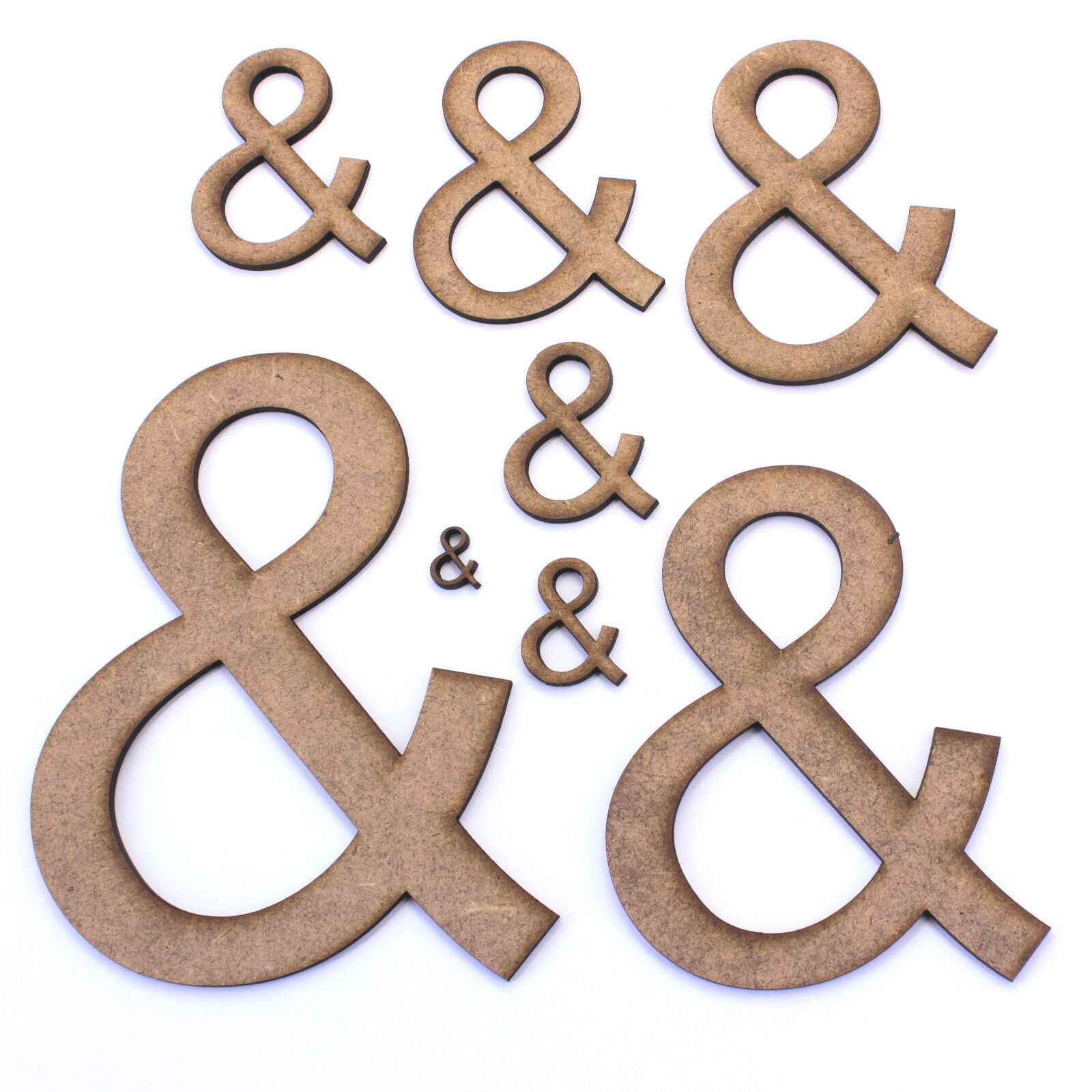 These 2mm thick MDF '&' Signs are available in the following sizes: 10mm, 20mm, 30mm, 40mm, 50mm, 60mm, 70mm, 80mm, 90mm, 100mm, 150mm, 200mm They are laser cut from premium 2mm thick MDF These embellishments can be used in craft projects, making decorations, gift tags, cards, decoupage etc. They can be painted and glued into place (some light roughing of the surface with sandpaper may be required depending on medium being used). Being laser cut, they do have some small laser burn marks, though these can be painted over or sanded out if required.