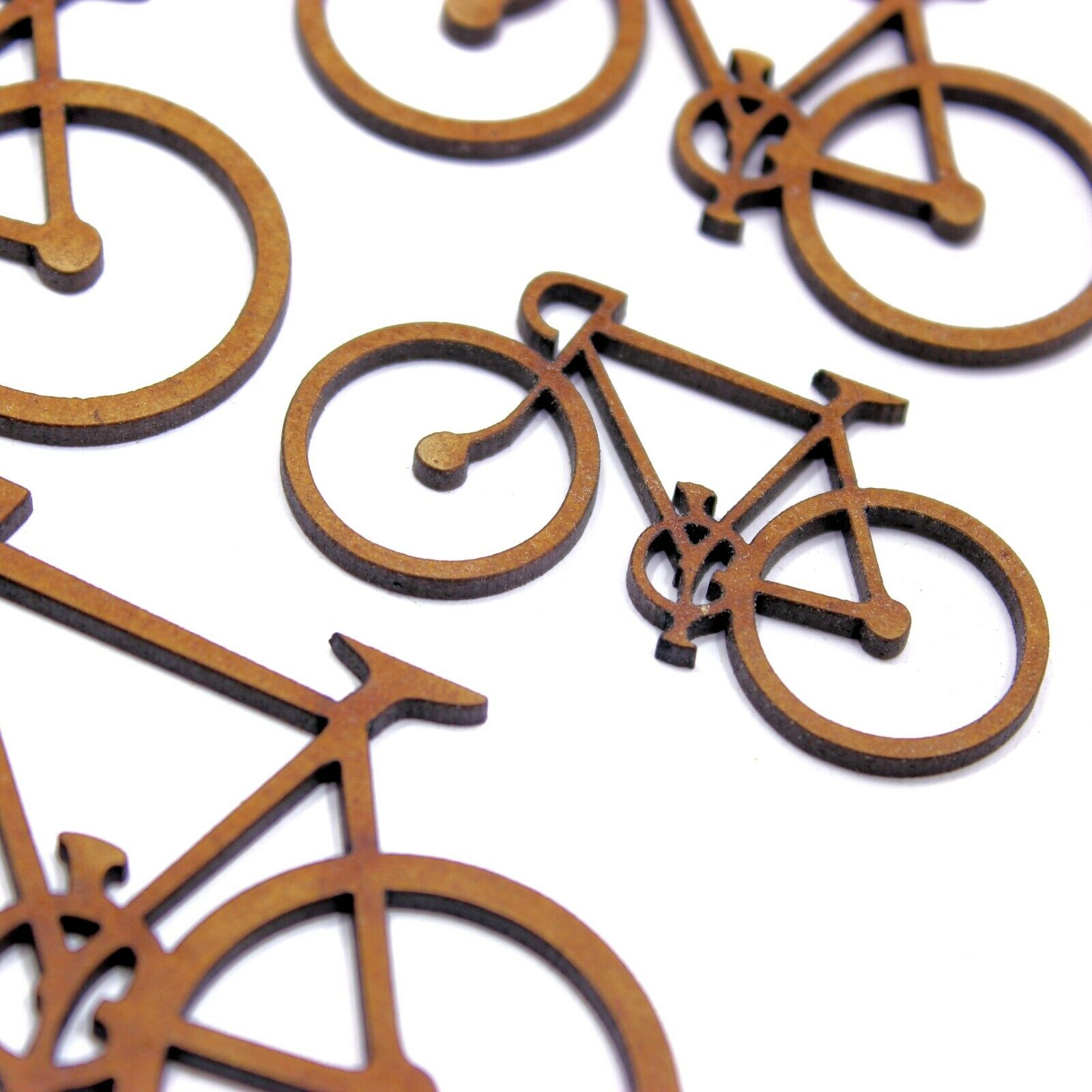 These 2mm thick MDF Bicycle shapes are available in the following sizes: 50mm, 60mm, 70mm, 80mm, 90mm, 100mm, 150mm, 200mm They are laser cut from premium 2mm thick MDF These embellishments can be used in craft projects, making decorations, gift tags, cards, decoupage etc. They would be perfect for creating birthday, wedding or anniversary cards, gifts and decorations. They can be painted and glued into place (some light roughing of the surface with sandpaper may be required depending on medium being used). Being laser cut, they do have some small laser burn marks, though these can be painted over or sanded out if required.