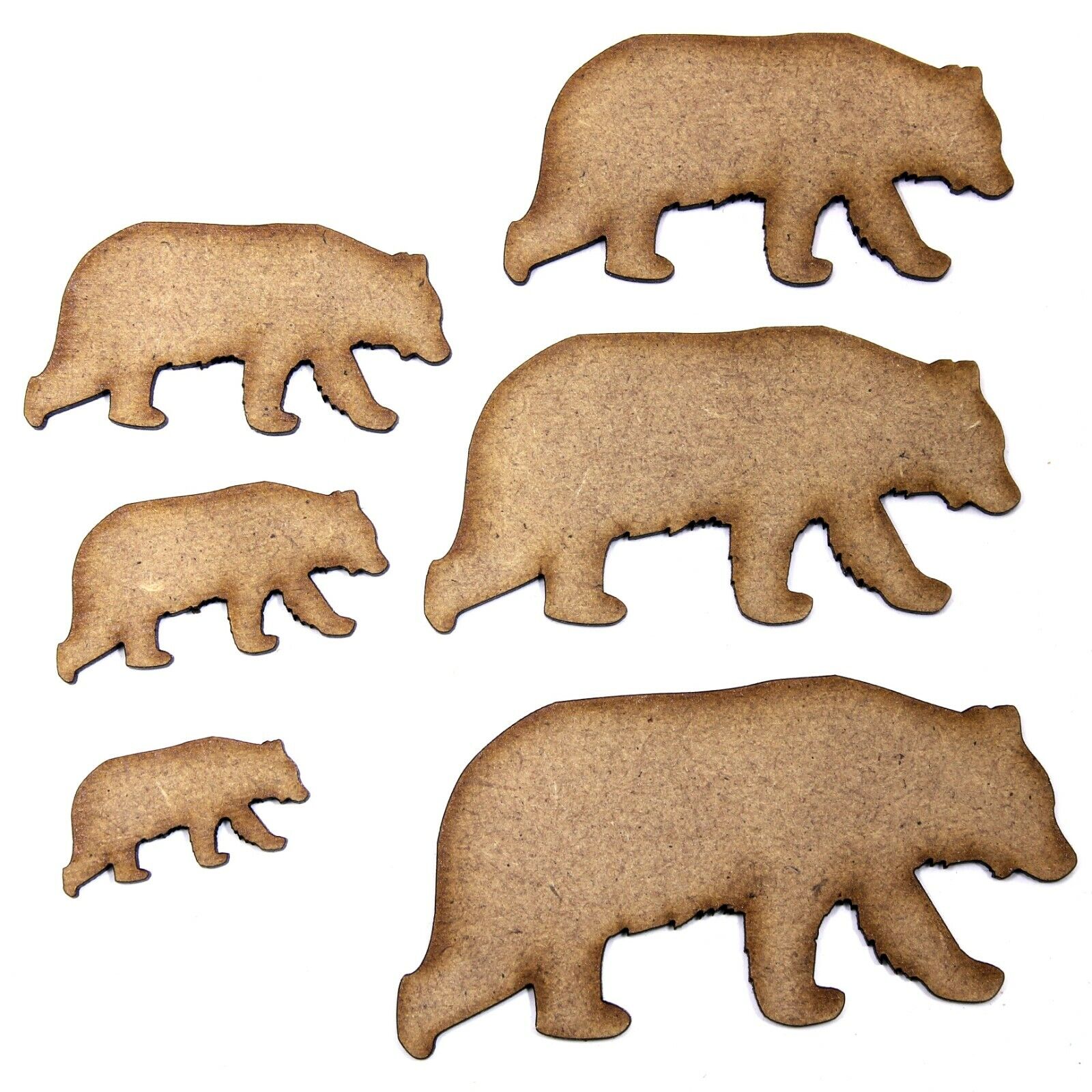 Black Bear Craft Shape, Various Sizes, 2mm MDF Wood.Grizzly, brown, bear