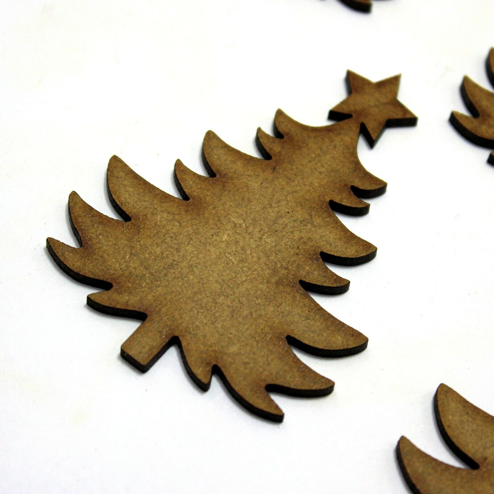 These 2mm thick MDF Christmas Tree shapes are available in the following sizes: 40mm, 50mm, 60mm, 70mm, 80mm, 90mm, 100mm, 150mm, 200mm They are laser cut from premium 2mm thick MDF These embellishments can be used in craft projects, making decorations, gift tags, cards, decoupage etc. They would be perfect for creating wedding or anniversary cards, gifts and decorations. They can be painted and glued into place (some light roughing of the surface with sandpaper may be required depending on medium being used). Being laser cut, they do have some small laser burn marks, though these can be painted over or sanded out if required.