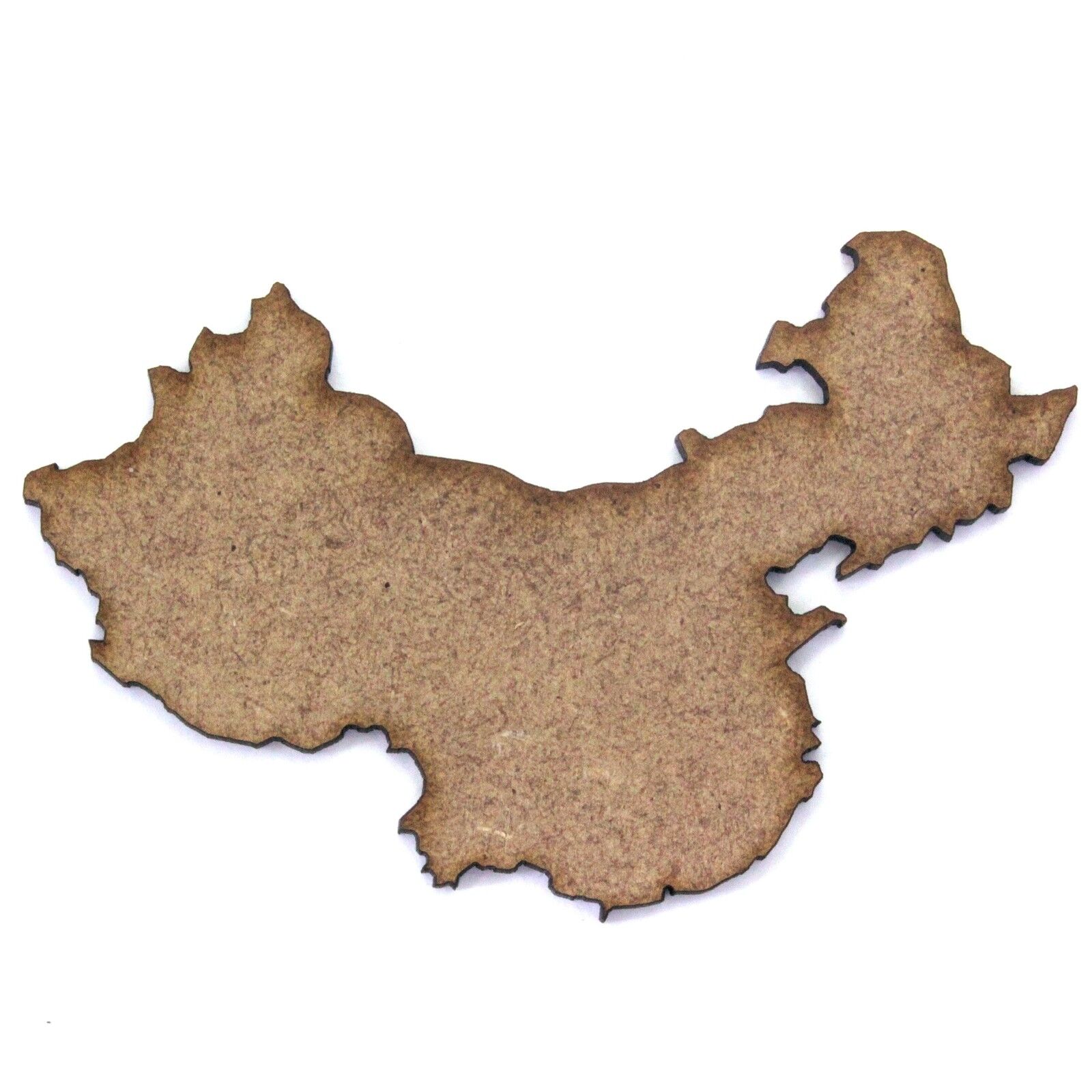These 2mm thick MDF China map shapes are available in the following sizes: 50mm, 60mm, 70mm, 80mm, 90mm, 100mm, 150mm, 200mm They are laser cut from premium 2mm thick MDF These embellishments can be used in craft projects, making decorations, gift tags, cards, decoupage etc. They can be painted and glued into place (some light roughing of the surface with sandpaper may be required depending on medium being used). Being laser cut, they do have some small laser burn marks, though these can be painted over or sanded out if required.