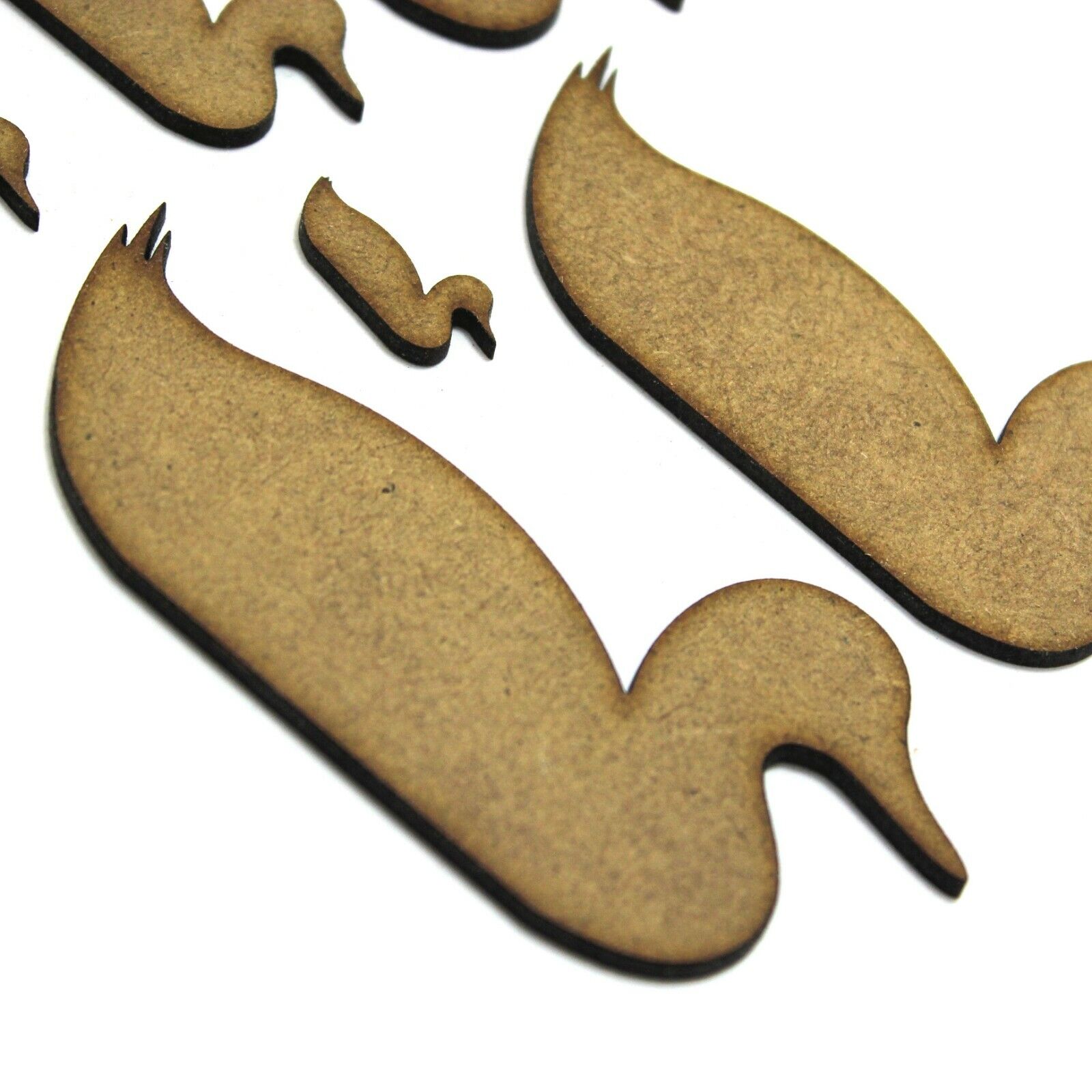 These 2mm thick MDF duck shapes are available in the following sizes: 20mm, 30mm, 40mm, 50mm, 60mm, 70mm, 80mm, 90mm, 100mm, 150mm, 200mm They are laser cut from premium 2mm thick MDF These embellishments can be used in craft projects, making decorations, gift tags, cards, decoupage etc. They would be perfect for creating wedding or anniversary cards, gifts and decorations. They can be painted and glued into place (some light roughing of the surface with sandpaper may be required depending on medium being used). Being laser cut, they do have some small laser burn marks, though these can be painted over or sanded out if required.