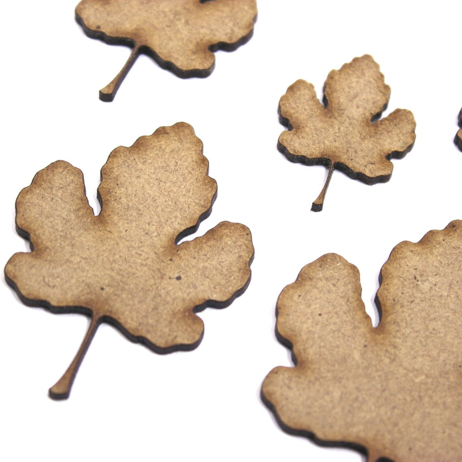 These 2mm thick MDF Fig Leaf shapes are available in the following sizes: 20mm, 30mm, 40mm, 50mm, 60mm, 70mm, 80mm, 90mm, 100mm, 150mm, 200mm They are laser cut from premium 2mm thick MDF These embellishments can be used in craft projects, making decorations, gift tags, cards, decoupage etc. They would be perfect for creating wedding or anniversary cards, gifts and decorations. They can be painted and glued into place (some light roughing of the surface with sandpaper may be required depending on medium being used). Being laser cut, they do have some small laser burn marks, though these can be painted over or sanded out if required.