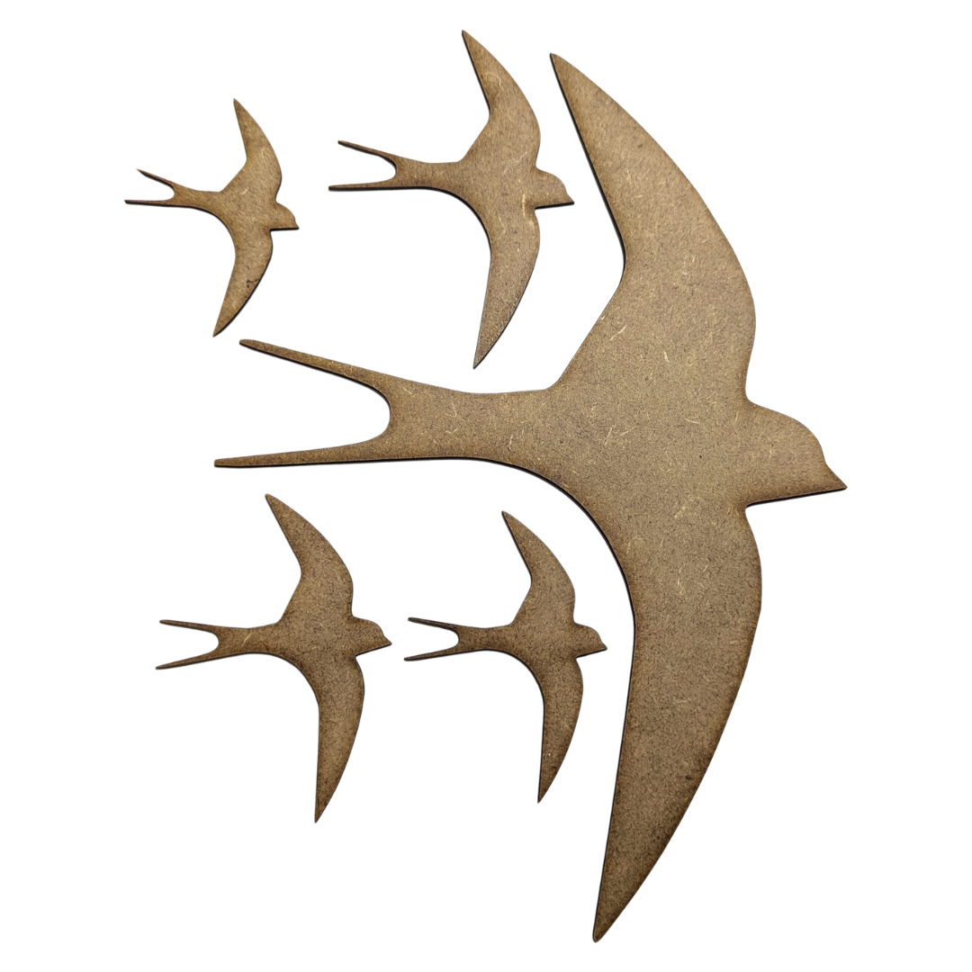 Flying Swift / Swallow Craft Shapes. Various Sizes 20mm - 200mm. 2mm MDF Wood Laser Cut