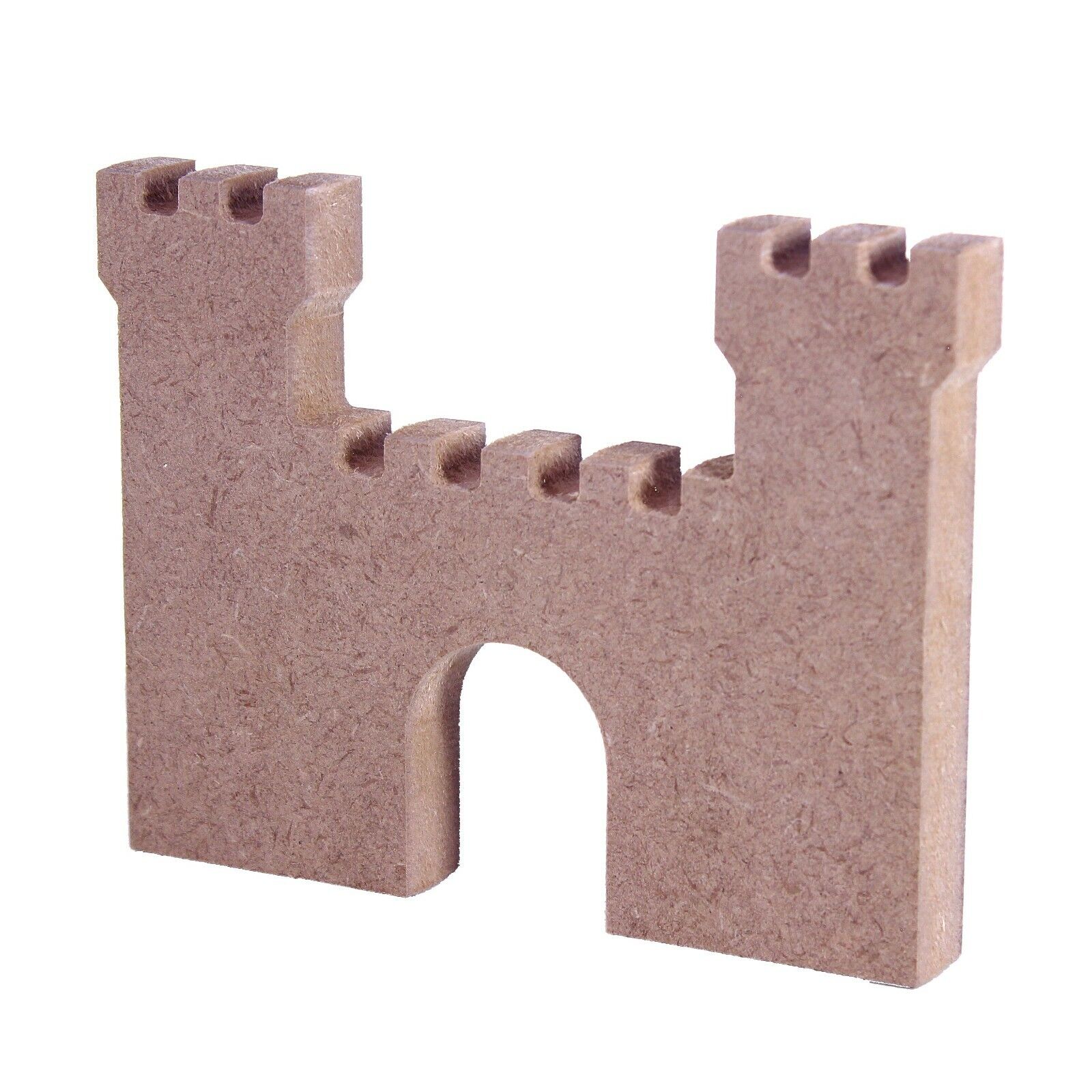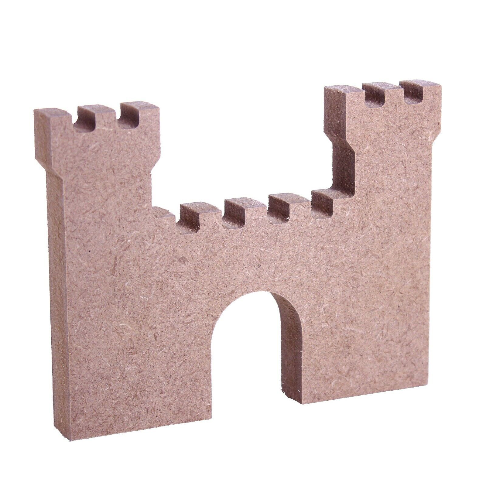 These 18mm thick MDF Castle shapes are available in the following sizes: 100mm, 150mm, 200mm, 250mm, and 300mm They are cut from premium 18mm thick MDF using a rotary CNC Tool. These shapes could be used to make decorations and gifts. They are supplied unfinished, so they can be easily painted (sandpaper may be required to prepare the surface depending on medium being used).