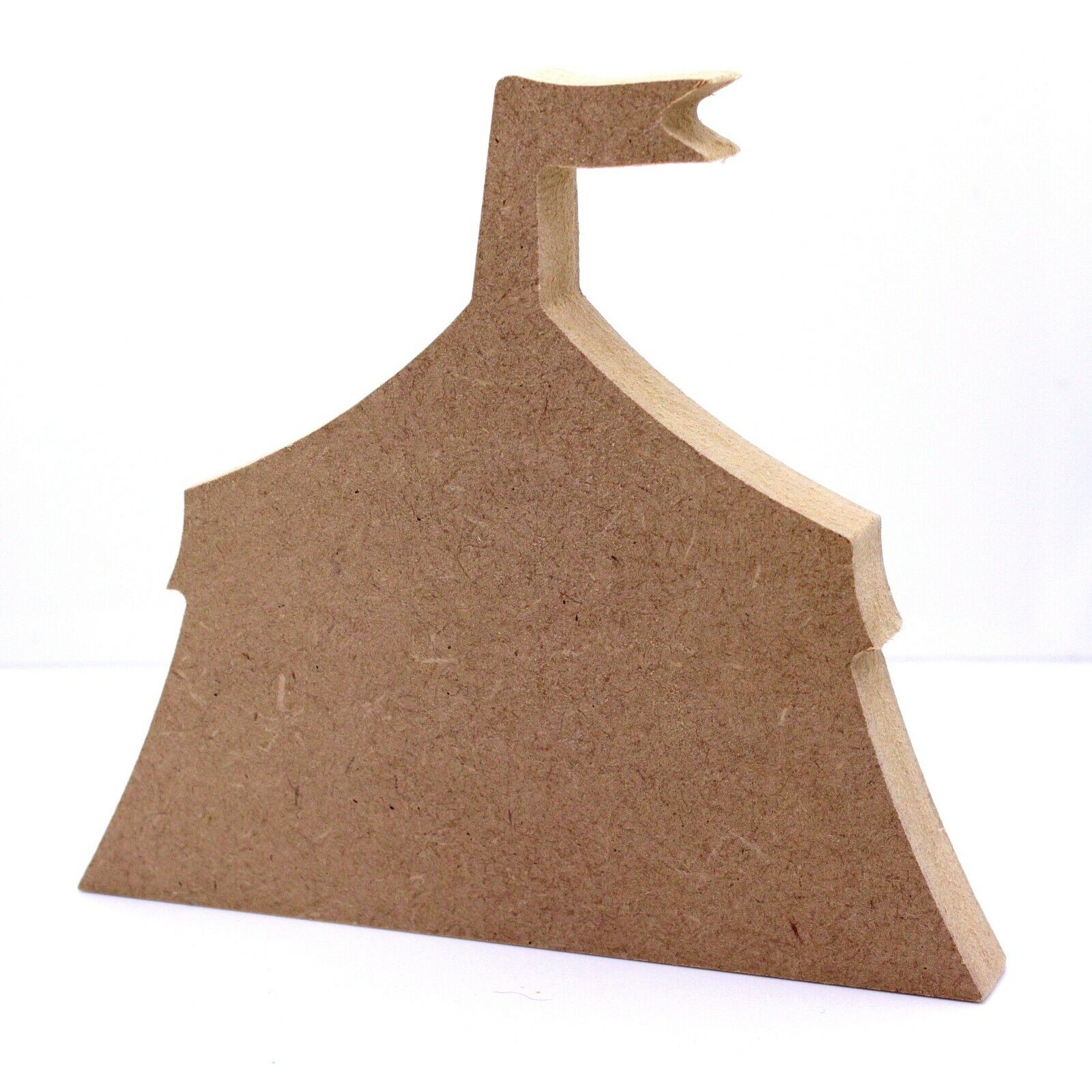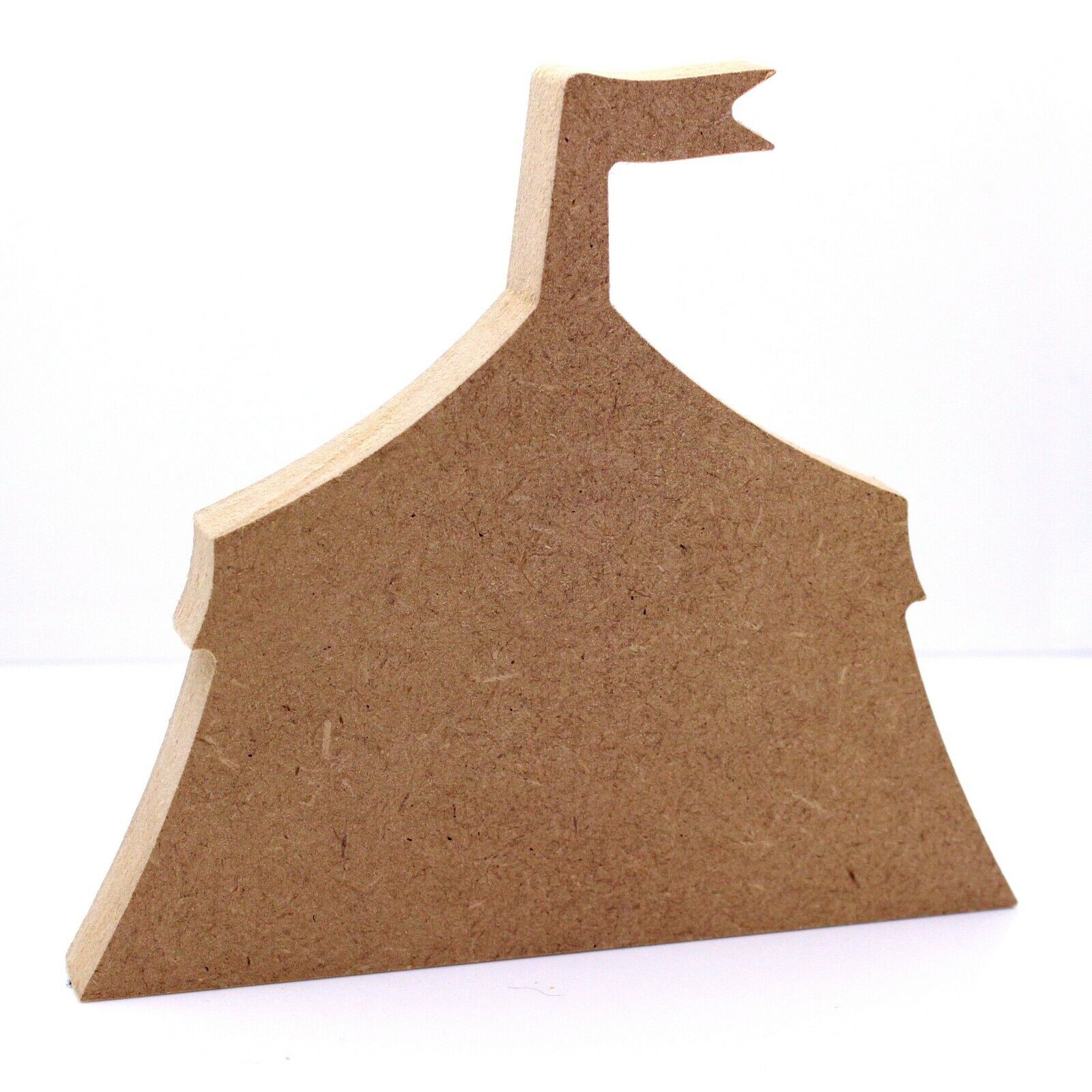 These 18mm thick MDF Circus Tent shapes are available in the following sizes: 150mm, 200mm, 250mm, and 300mm They are cut from premium 18mm thick MDF using a rotary CNC Tool. These shapes could be used to make decorations and gifts. They are supplied unfinished, so they can be easily painted (sandpaper may be required to prepare the surface depending on medium being used).