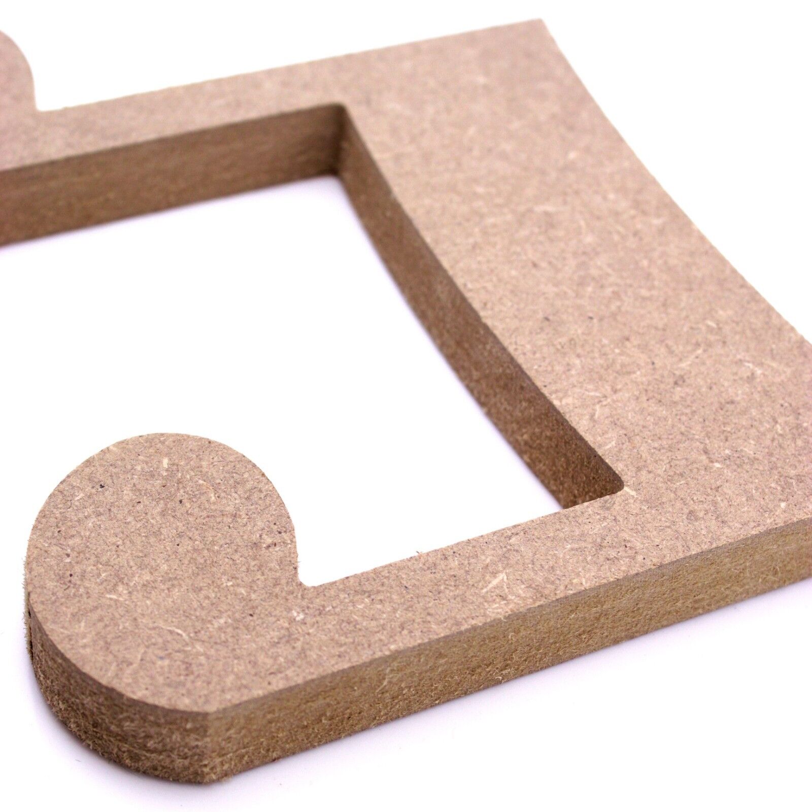 These 18mm thick MDF Music Note shapes are available in the following sizes: 100mm, 150mm, 200mm, 250mm, and 300mm They are cut from premium 18mm thick MDF using a rotary CNC Tool. These shapes could be used to make decorations and gifts. They are supplied unfinished, so they can be easily painted (sandpaper may be required to prepare the surface depending on medium being used).
