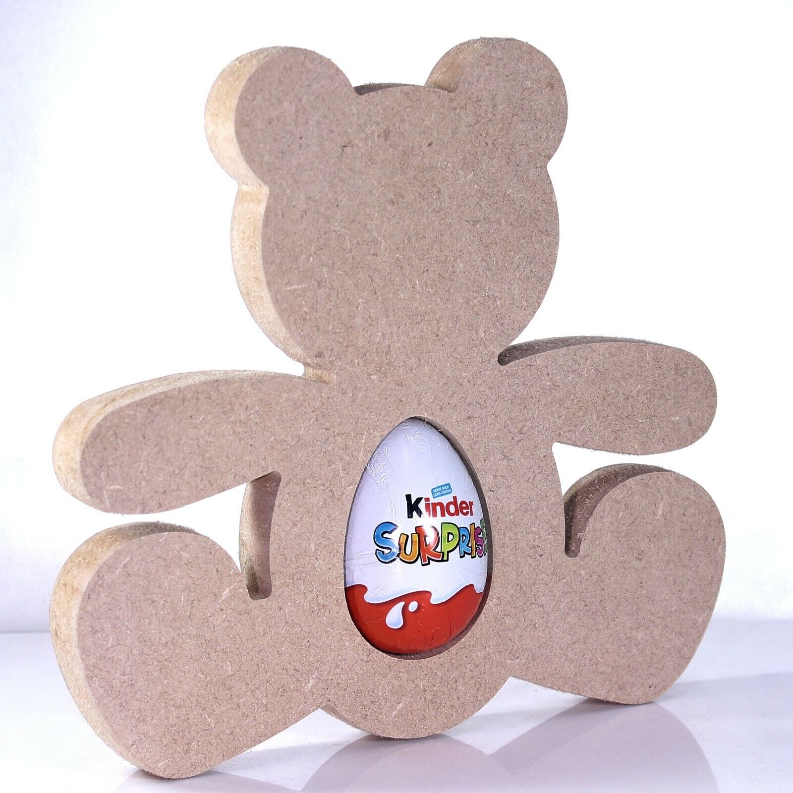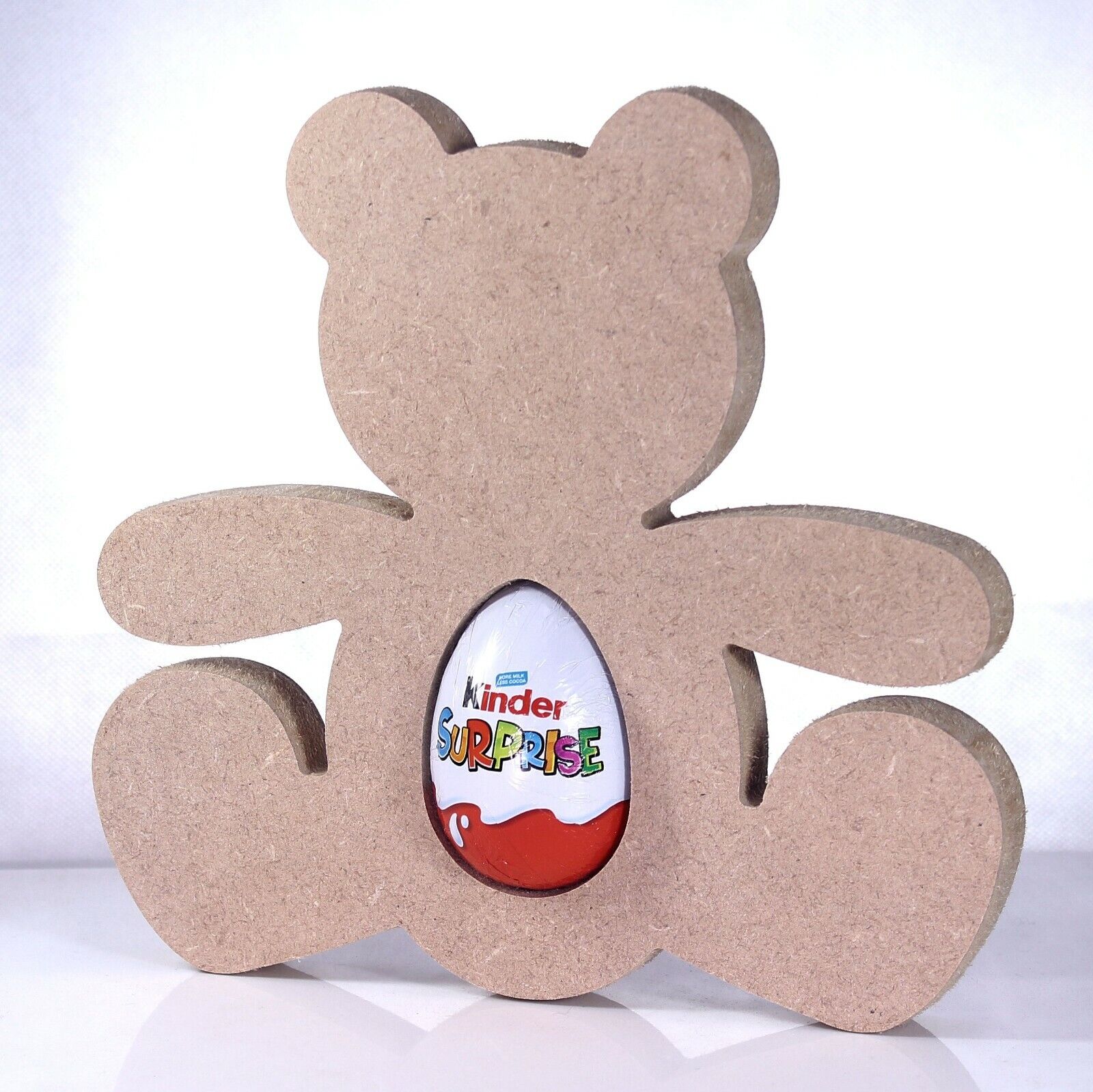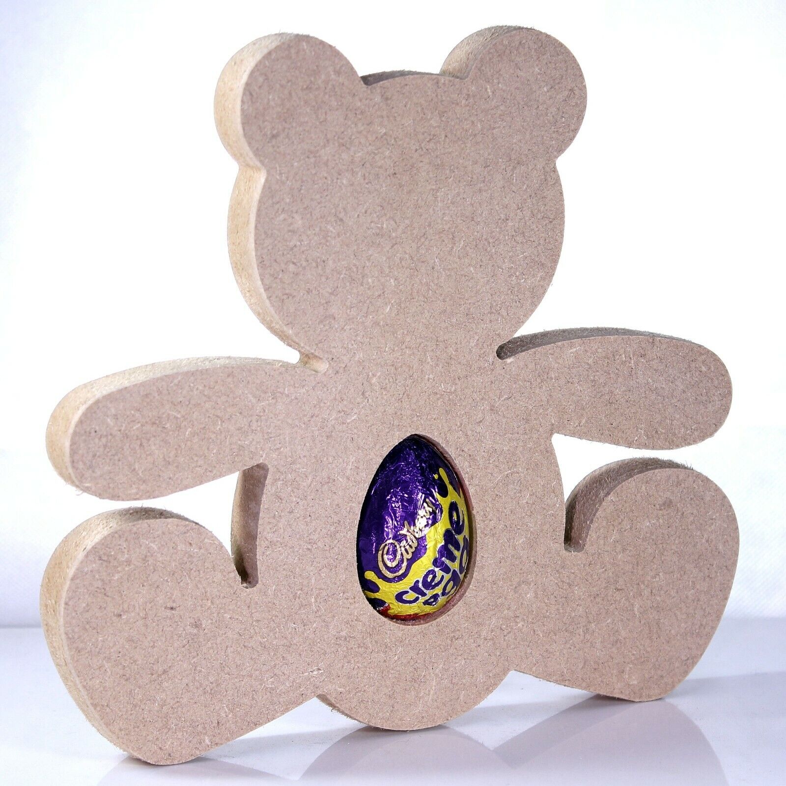 Free Standing 18mm MDF Teddy Bear Egg Holder Shape. Kinder Egg, Creme Egg.