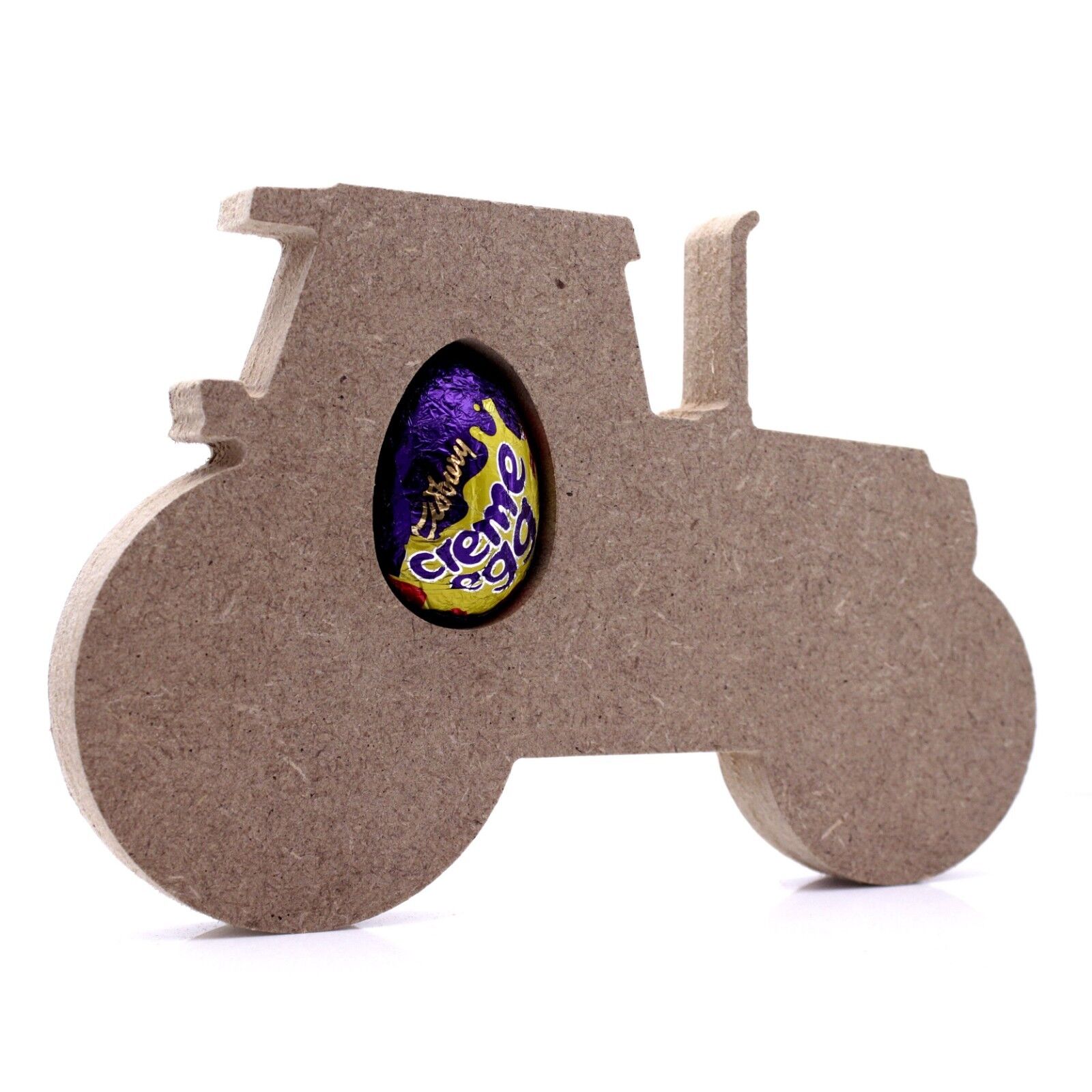 Free Standing 18mm MDF Tractor Easter Egg Holder Shape. Kinder Egg, Creme Egg,