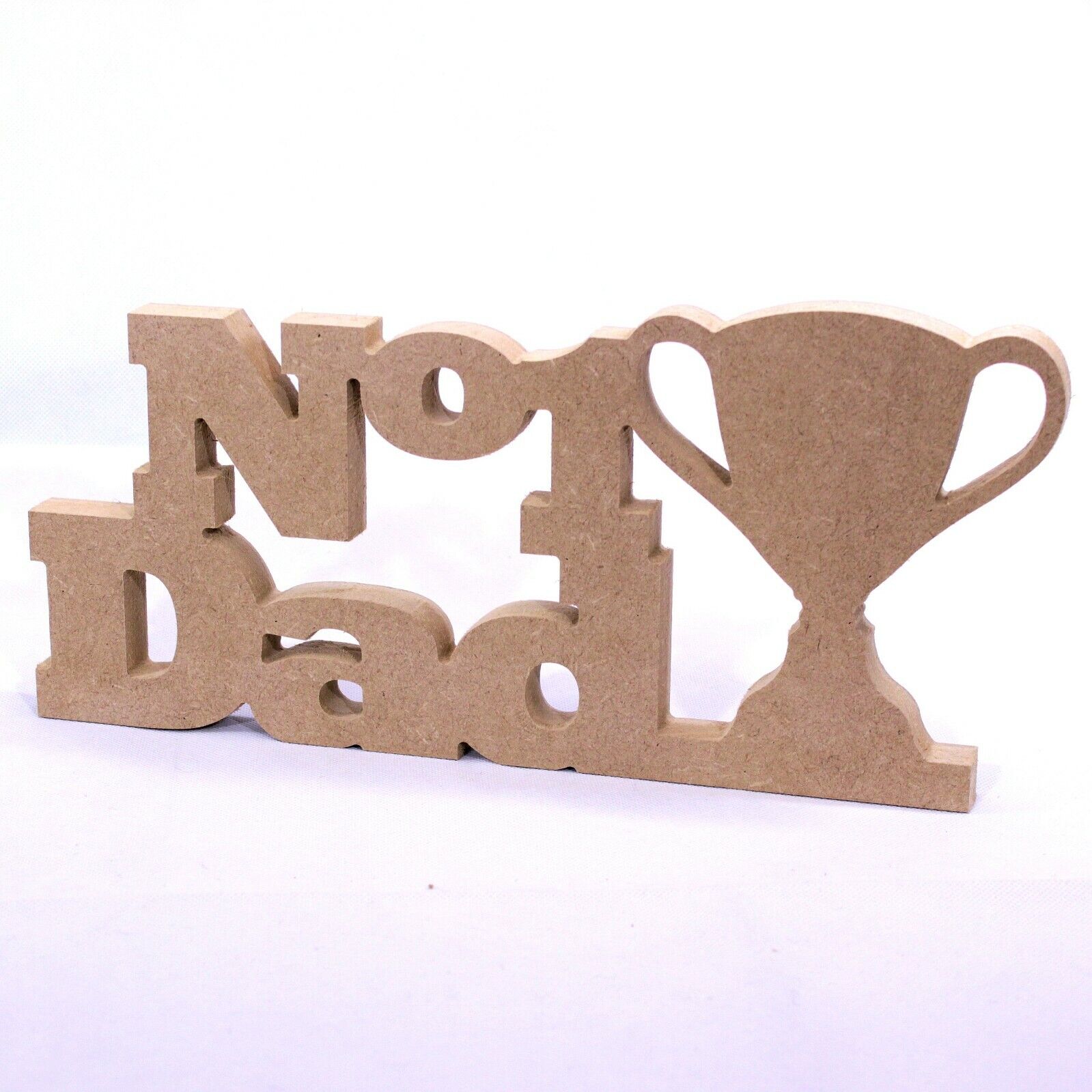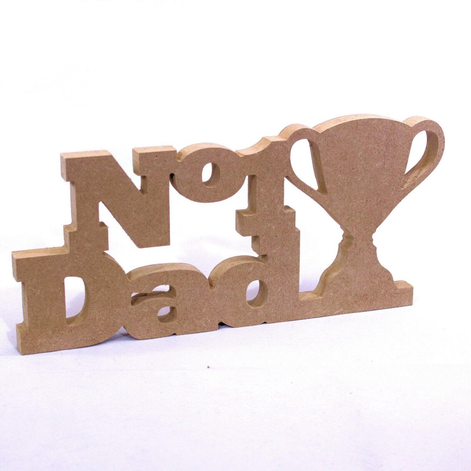 Free Standing No.1 Dad Words and Trophy. 18mm MDF Fathers Day, Number 1