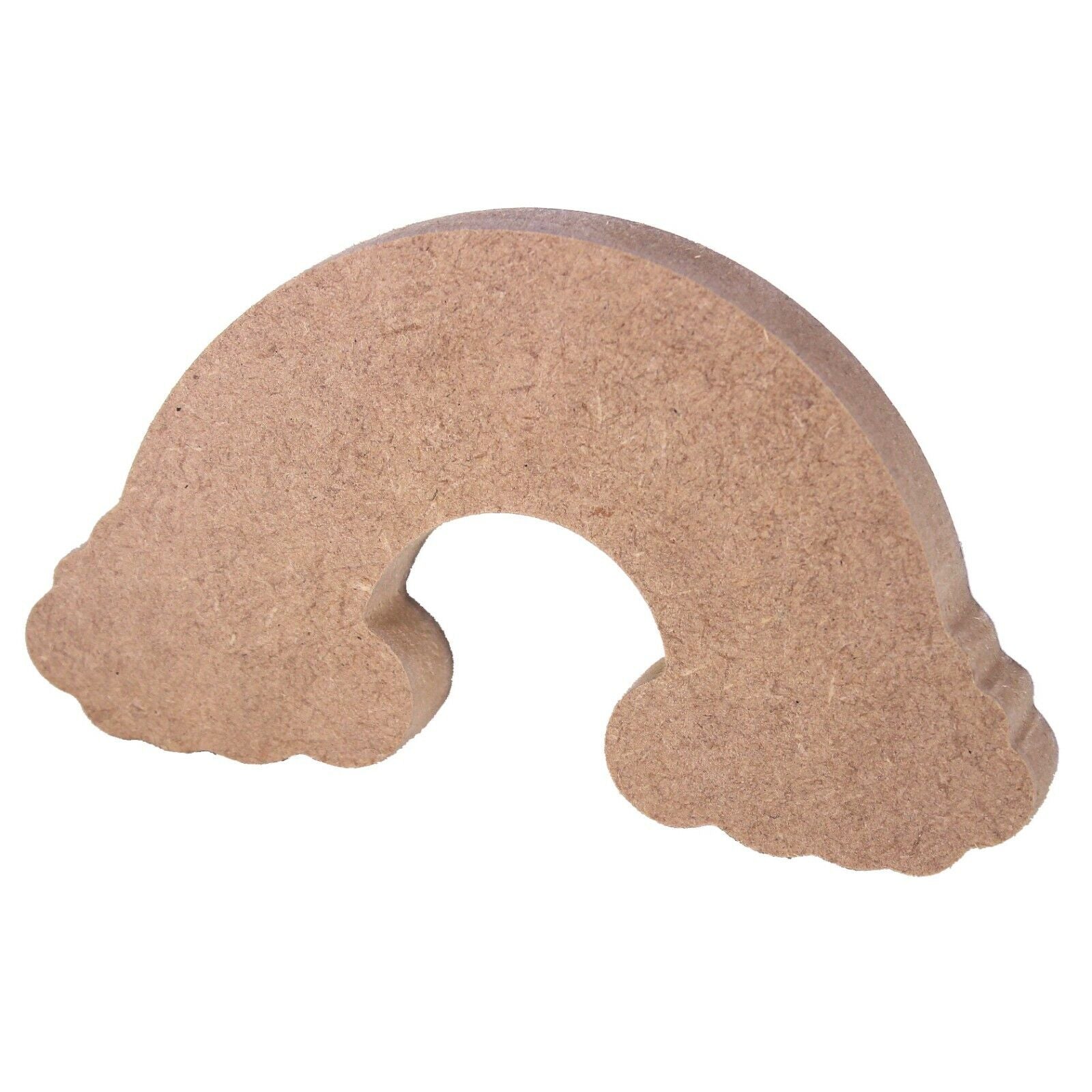 These 18mm thick MDF Rainbow shapes are available in the following sizes: 150mm, 200mm, 250mm, and 300mm They are cut from premium 18mm thick MDF using a rotary CNC Tool. These shapes could be used to make decorations and gifts. They are supplied unfinished, so they can be easily painted (sandpaper may be required to prepare the surface depending on medium being used).