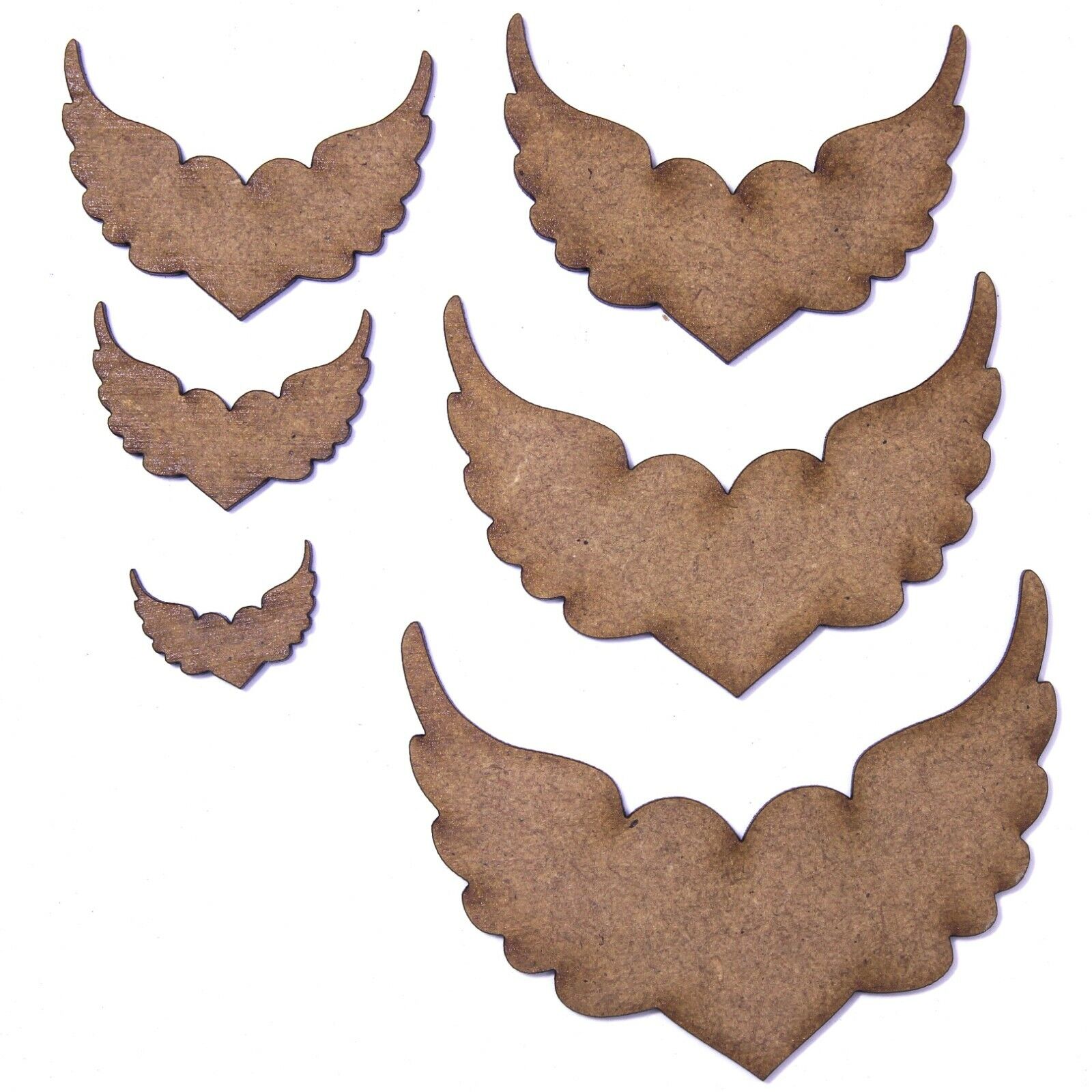 Heart with Angel Wings Craft Shape, Various Sizes, 2mm MDF Wood. Love