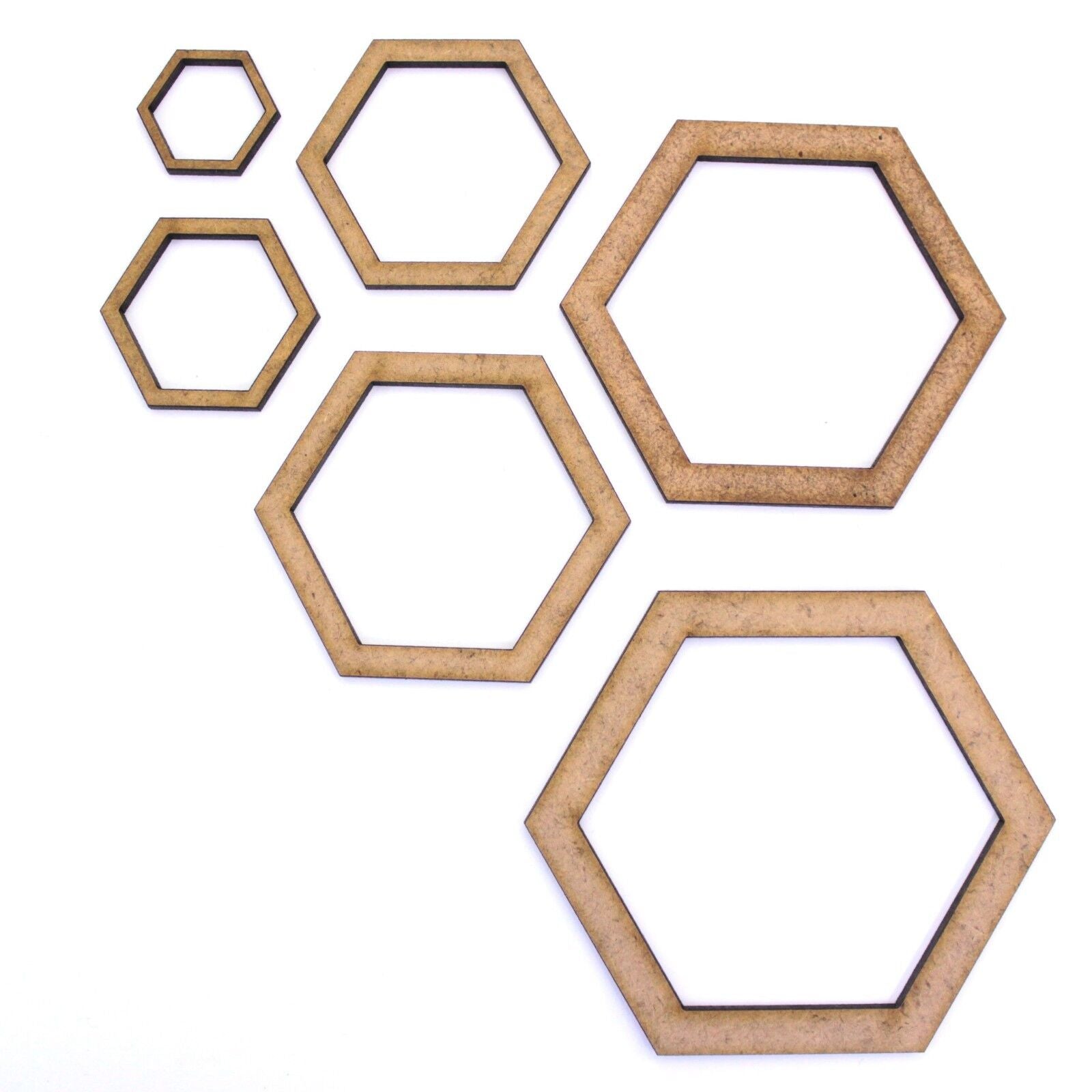 Hexagon Craft Shape Hollow Frame, 2cm to 25cm. 2mm MDF Wood. Bee, Beehive nature