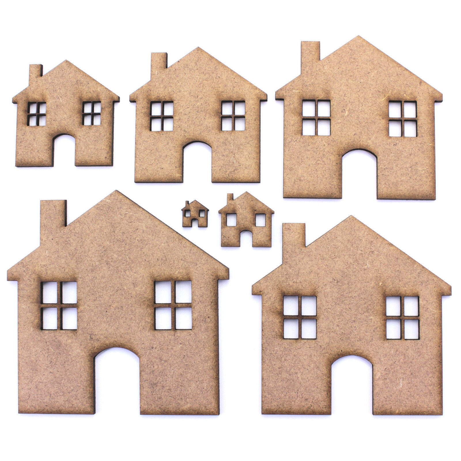 These 2mm thick MDF houses are available in the following sizes: 10mm, 20mm, 30mm, 40mm, 50mm, 60mm, 70mm, 80mm, 90mm, 100mm, 150mm, 200mm They are laser cut from premium 2mm thick MDF These embellishments can be used in craft projects, making decorations, gift tags, cards, decoupage etc. They can be painted and glued into place (some light roughing of the surface with sandpaper may be required depending on medium being used). Please note that the windows on the 10mm and 20mm houses, are single holes. Being laser cut, they do have some small laser burn marks, though these can be painted over or sanded out if required.