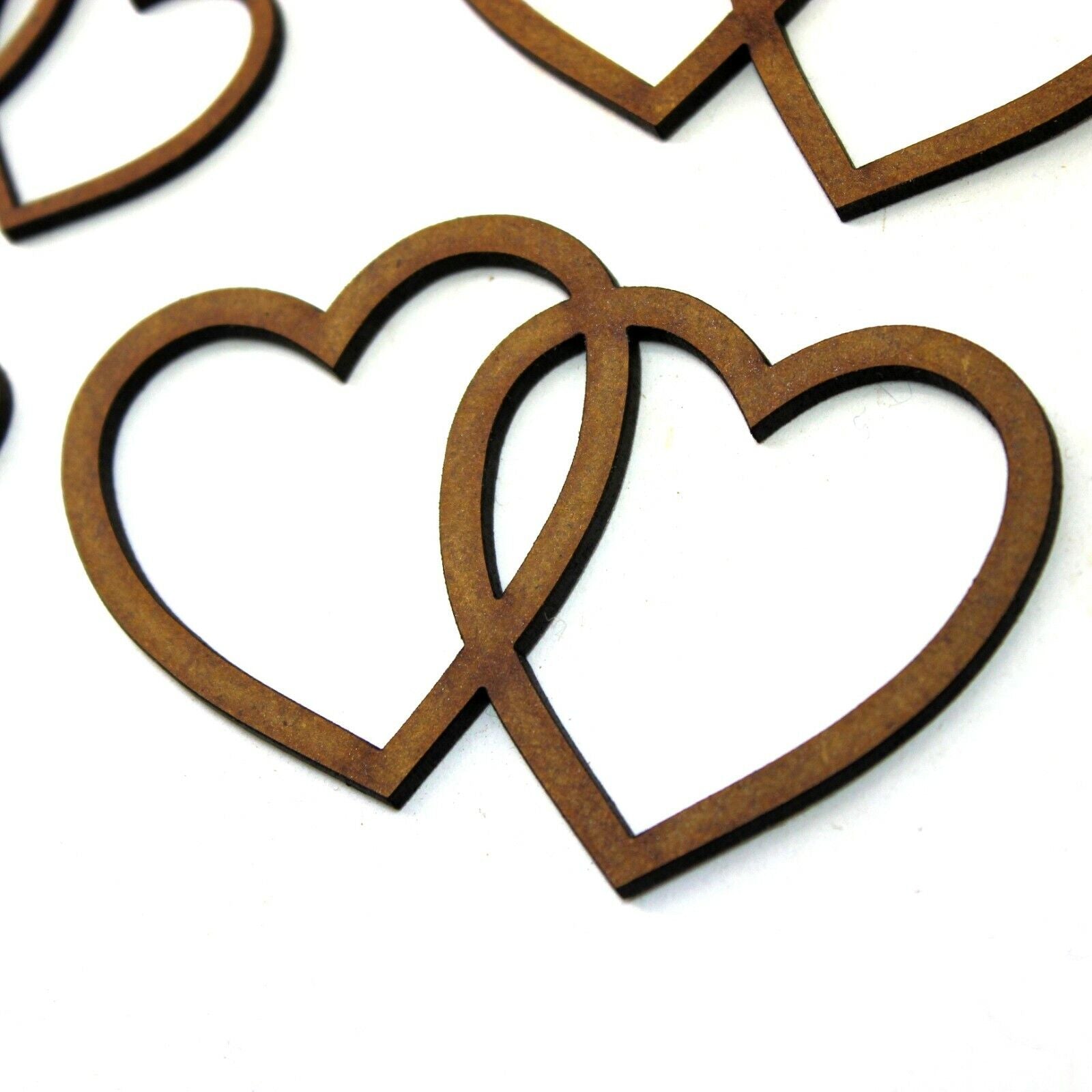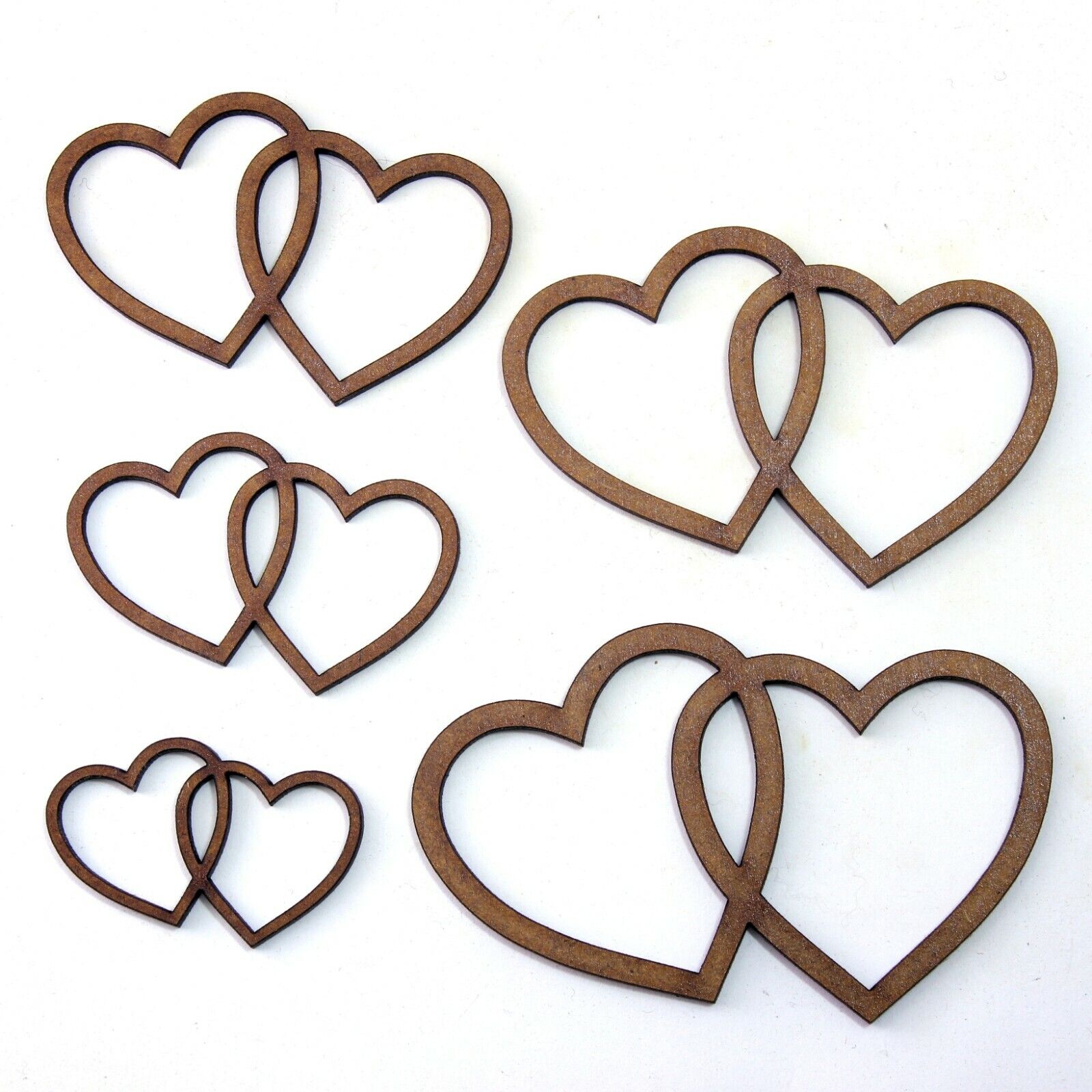 Joined Hollow Hearts Craft Shape, Various Sizes, 2mm MDF Wood. Valentine, Love