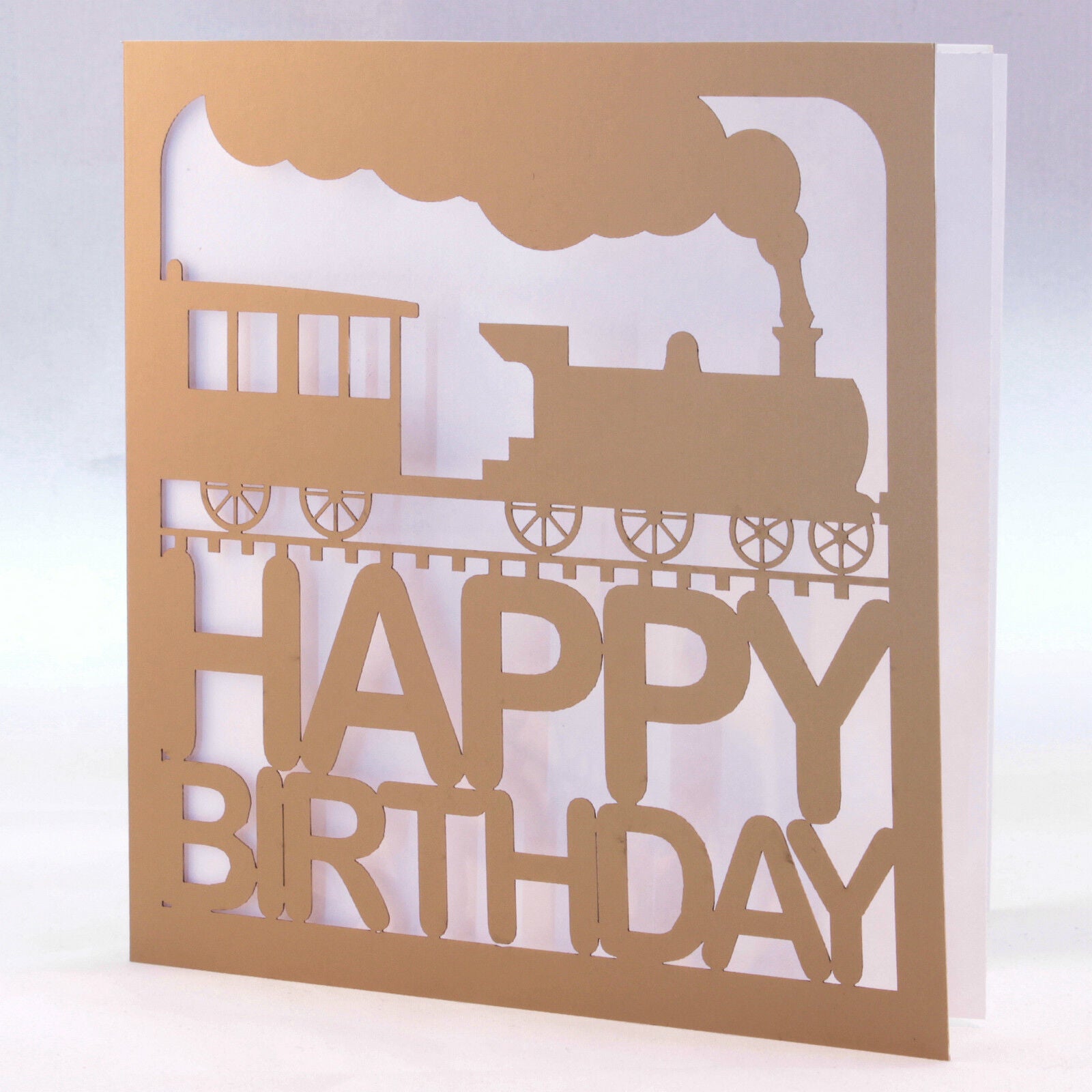 Laser Cut Gold Train Birthday Card - Trains / Vehicles