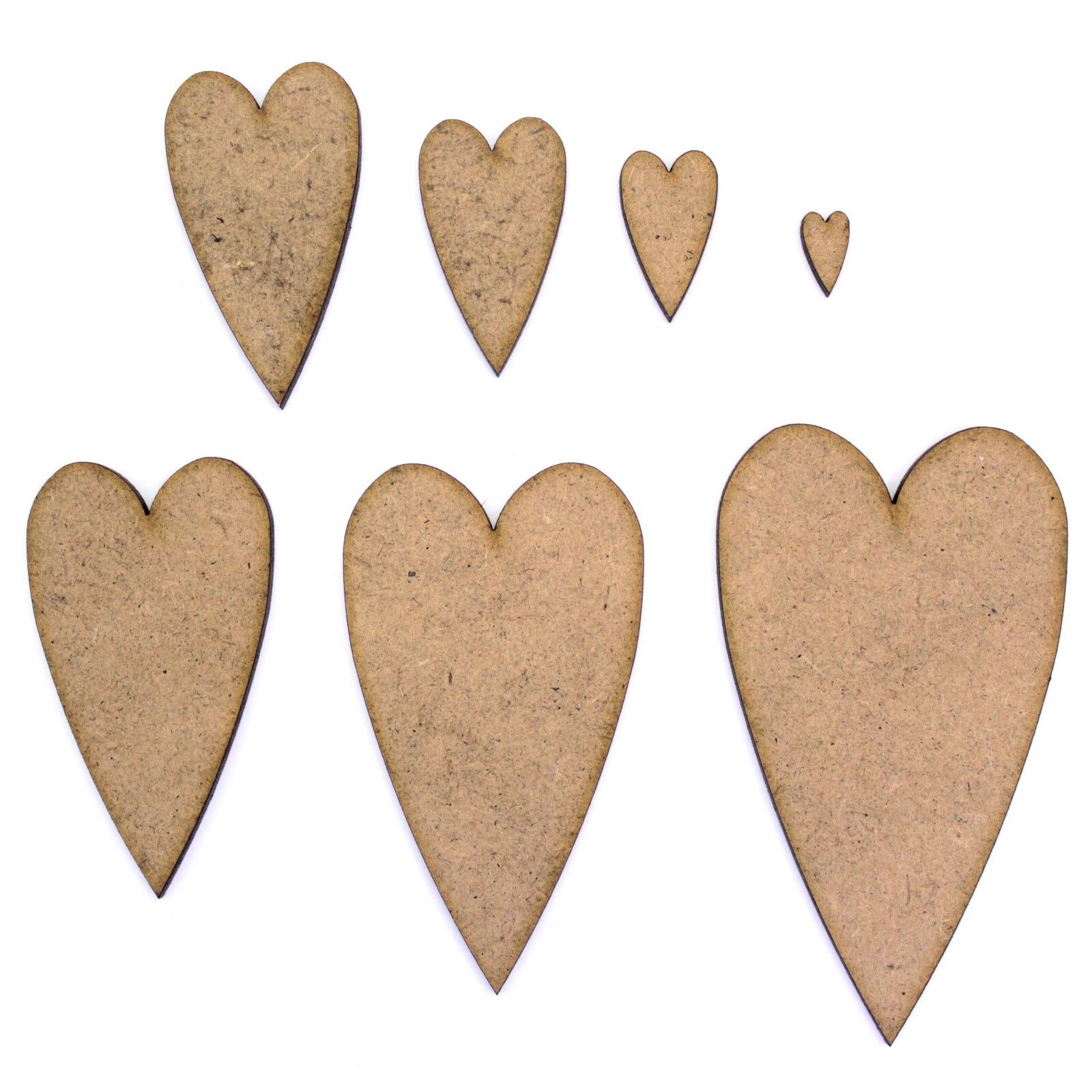 Long Heart Craft Shape, Various Sizes, 2mm MDF Wood. Elongated, Rustic,Primitive