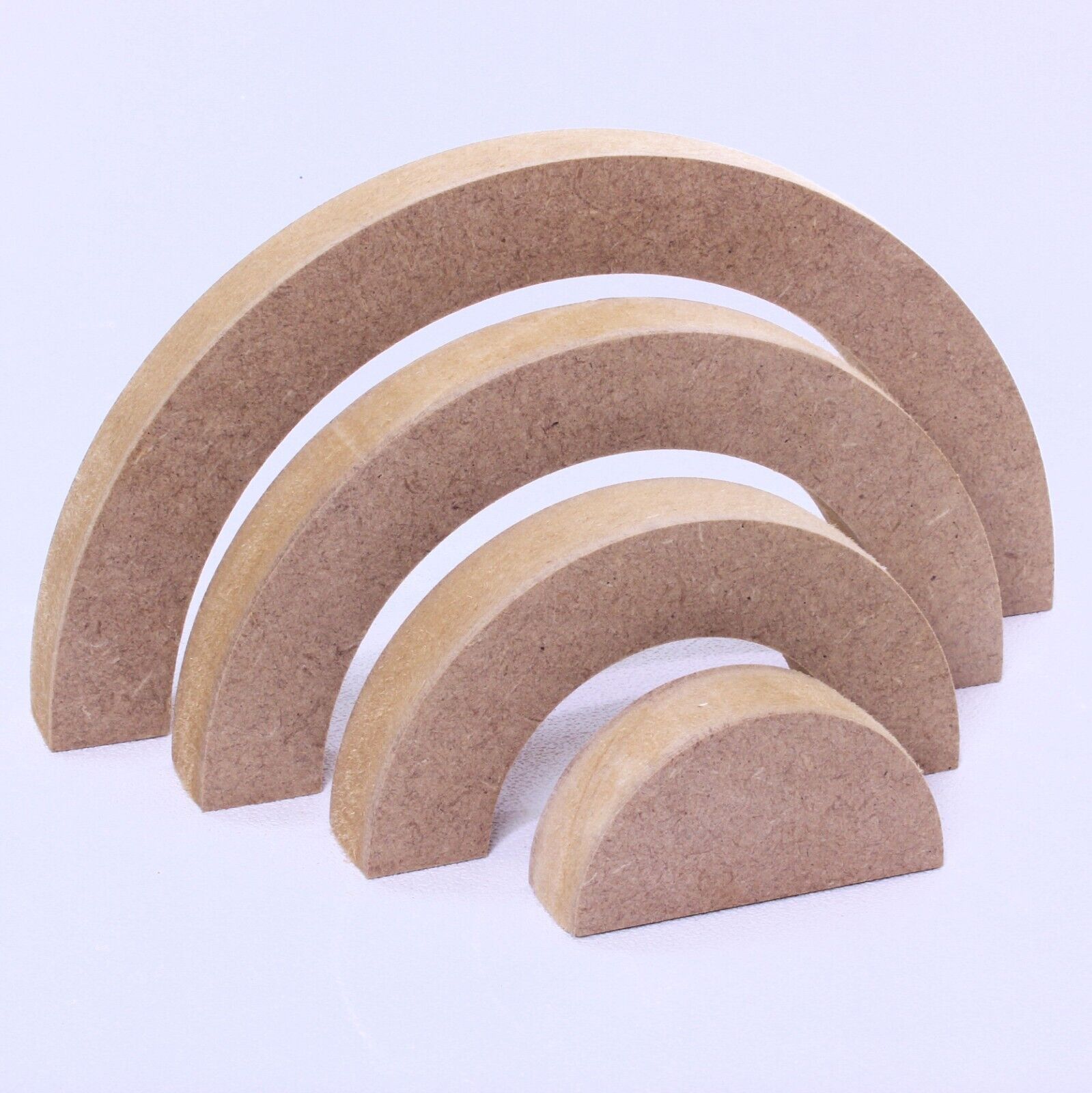 These 18mm thick MDF Rainbow Stack shapes are cut from premium 18mm thick MDF using a rotary CNC Tool. These shapes could be used to make decorations and gifts. They are supplied unfinished, so they can be easily painted (sandpaper may be required to prepare the surface depending on medium being used).