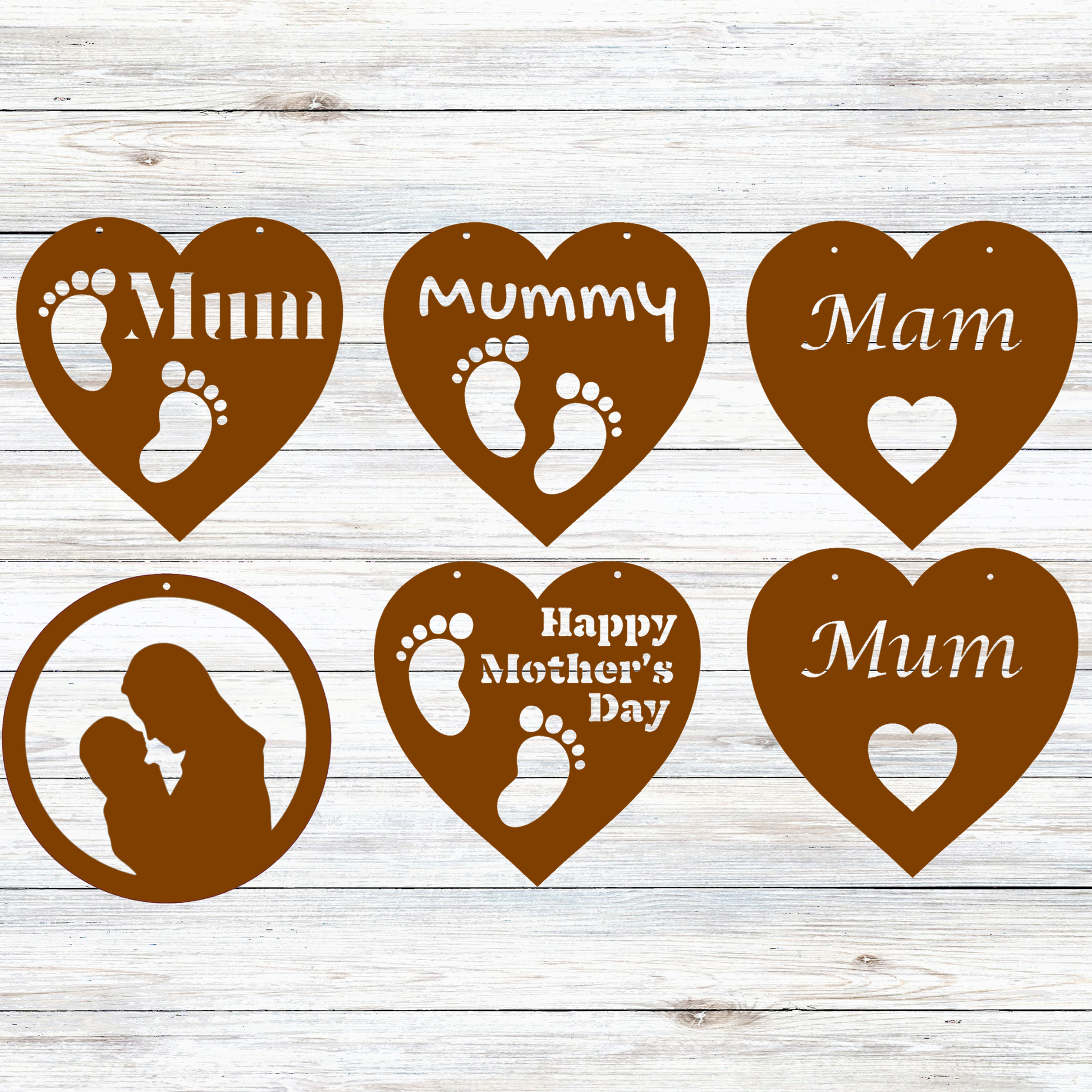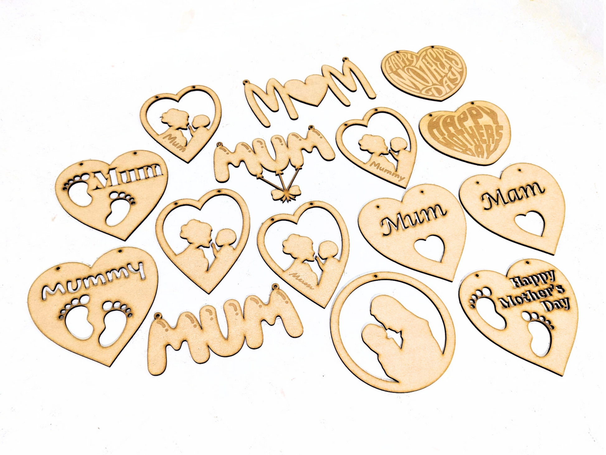 Mother's Day Hangers Laser Cut Digital File. Hanging Decoration Vector laser template cut file DXF SVG Ai EPS Glowforge pdf. Mum Gift