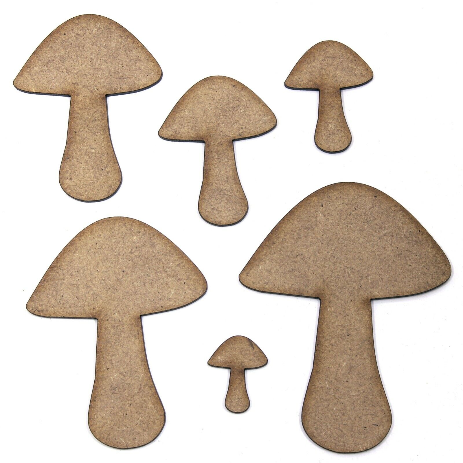 These 2mm thick MDF Mushroom 2 shapes are available in the following sizes: 20mm, 30mm, 40mm, 50mm, 60mm, 70mm, 80mm, 90mm, 100mm, 150mm, 200mm They are laser cut from premium 2mm thick MDF These embellishments can be used in craft projects, making decorations, gift tags, cards, decoupage etc. They would be perfect for creating wedding or anniversary cards, gifts and decorations. They can be painted and glued into place (some light roughing of the surface with sandpaper may be required depending on medium being used). Being laser cut, they do have some small laser burn marks, though these can be painted over or sanded out if required.