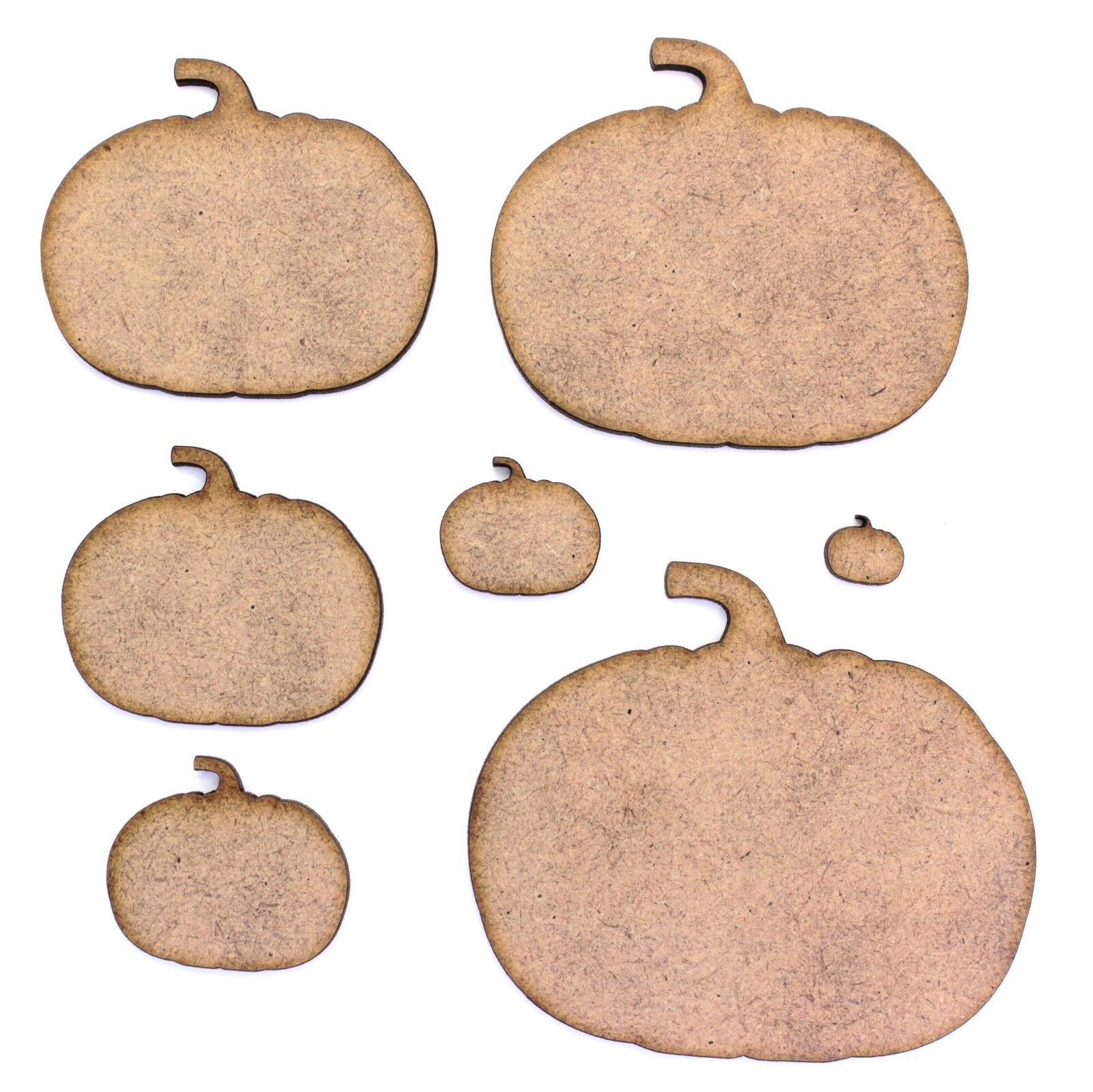 These 2mm thick MDF pumpkin shapes are available in the following sizes: 10mm, 20mm, 30mm, 40mm, 50mm, 60mm, 70mm, 80mm, 90mm, 100mm, 150mm, 200mm They are laser cut from premium 2mm thick MDF These embellishments can be used in craft projects, making decorations, gift tags, cards, decoupage etc. They would be perfect for creating wedding or anniversary cards, gifts and decorations. They can be painted and glued into place (some light roughing of the surface with sandpaper may be required depending on medium being used). Being laser cut, they do have some small laser burn marks, though these can be painted over or sanded out if required.