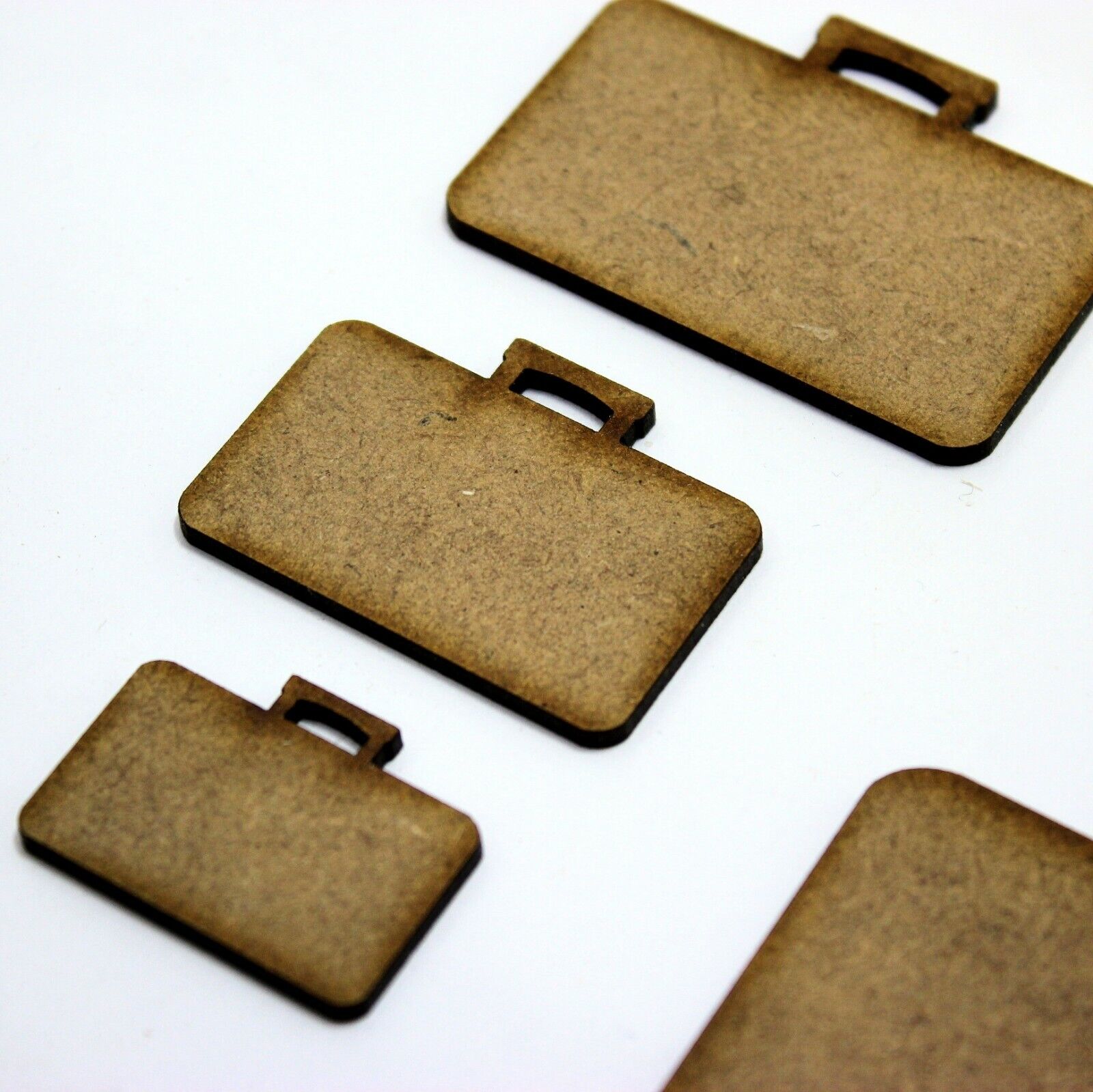 These 2mm thick MDF Suitcase shapes are available in the following sizes: 30mm, 40mm, 50mm, 60mm, 70mm, 80mm, 90mm, 100mm, 150mm, 200mm They are laser cut from premium 2mm thick MDF These embellishments can be used in craft projects, making decorations, gift tags, cards, decoupage etc. They would be perfect for creating wedding or anniversary cards, gifts and decorations. They can be painted and glued into place (some light roughing of the surface with sandpaper may be required depending on medium being used). Being laser cut, they do have some small laser burn marks, though these can be painted over or sanded out if required.