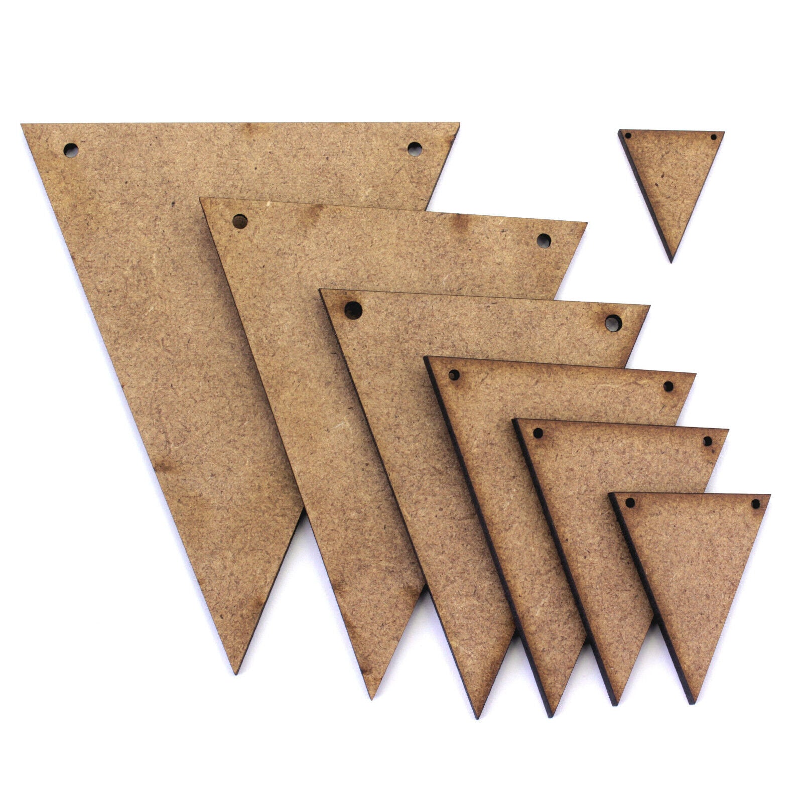 Triangle Bunting Craft Shapes, 2mm MDF Wood. Complete with Holes for Hanging