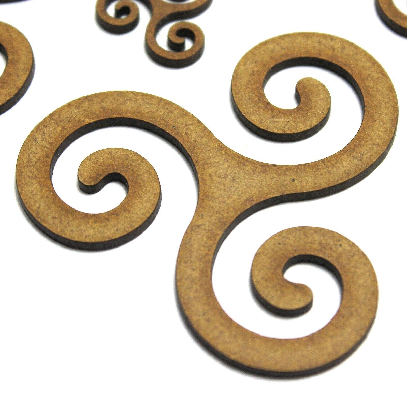 These 2mm thick MDF triskelion symbol shapes are available in the following sizes: 20mm, 30mm, 40mm, 50mm, 60mm, 70mm, 80mm, 90mm, 100mm, 150mm, 200mm They are laser cut from premium 2mm thick MDF These embellishments can be used in craft projects, making decorations, gift tags, cards, decoupage etc. They would be perfect for creating wedding or anniversary cards, gifts and decorations. They can be painted and glued into place (some light roughing of the surface with sandpaper may be required depending on medium being used). Being laser cut, they do have some small laser burn marks, though these can be painted over or sanded out if required.